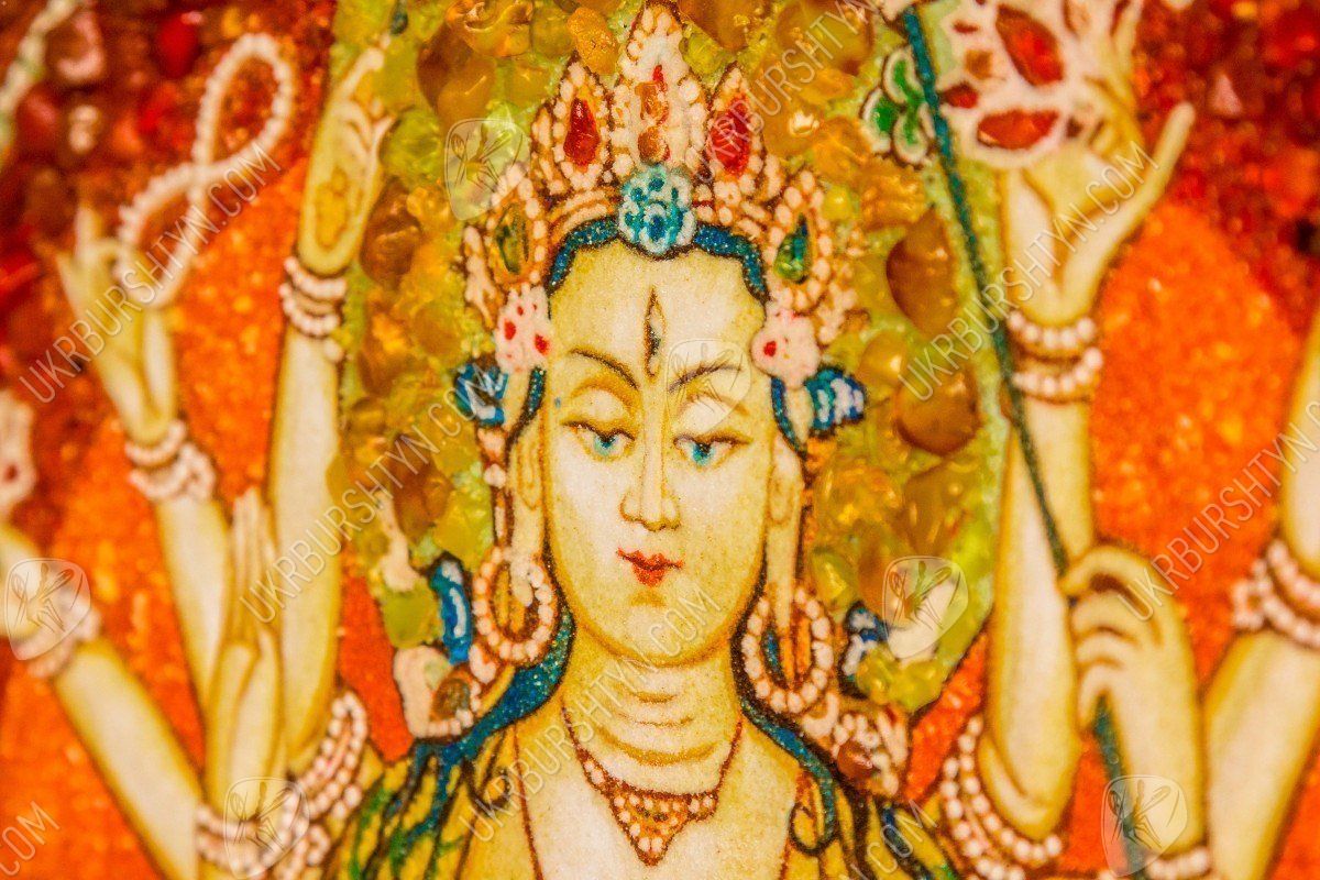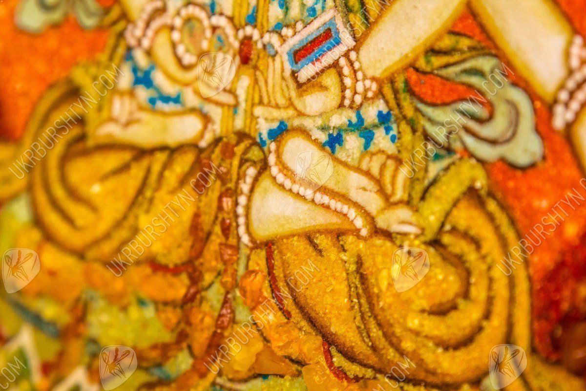Янтарная картина выполнена с высоким качеством. Все природные камешки тщательно подобраны и подогнаны по размерам и цвету. Они обрамляют медово-золотой лик.