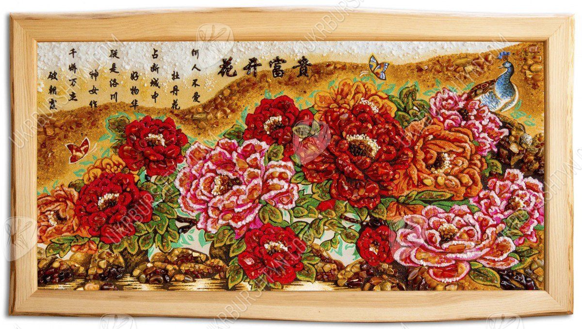 Панно «Пионы в китайской живописи» (графика Гохуа)