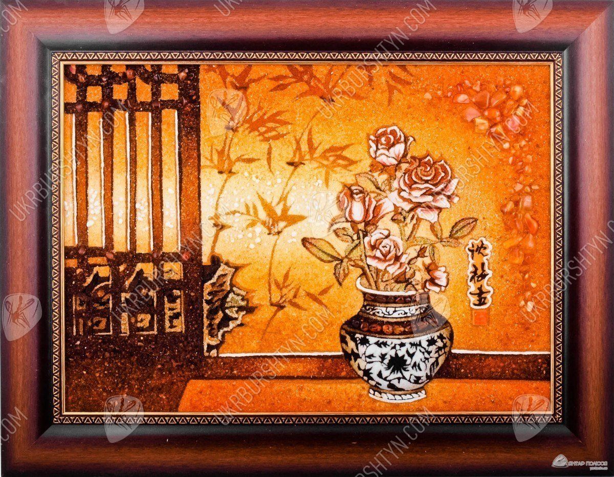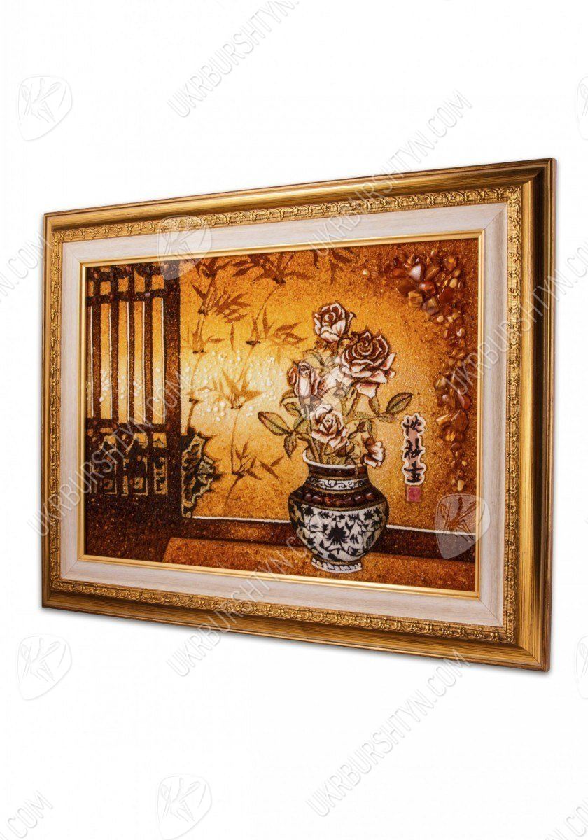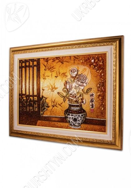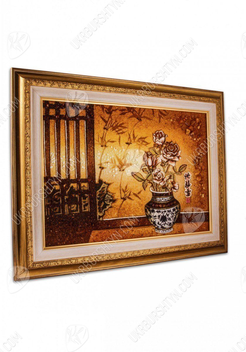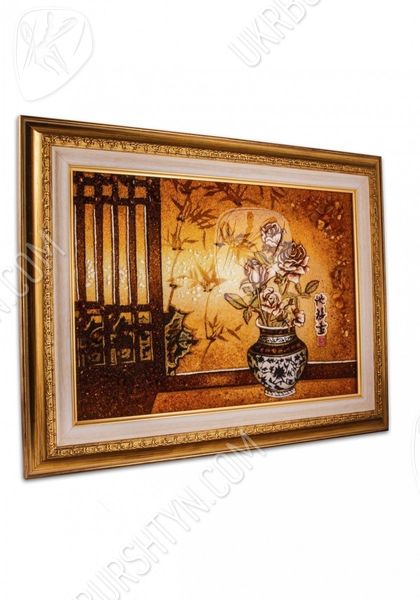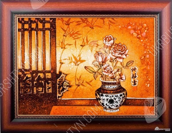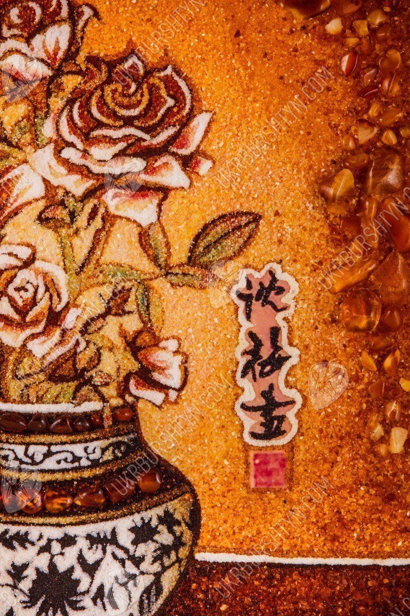Такая живопись и стилистика берет свое начало из древнего Китая. Эти картины должны украшать окружающее пространство, от них должна исходить позитивная энергия. Показанные на картине иероглифы, говорят о счастливом будущем. Янтарные камни, рассыпанные по картине, имеют определенный порядок. Каждый элемент был очень тщательно подобран художником, повторение такой картины просто невозможно. Она является единственной и неповторимой.