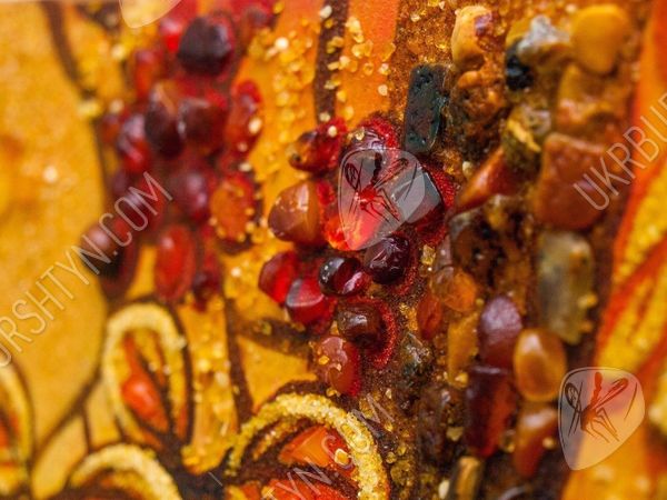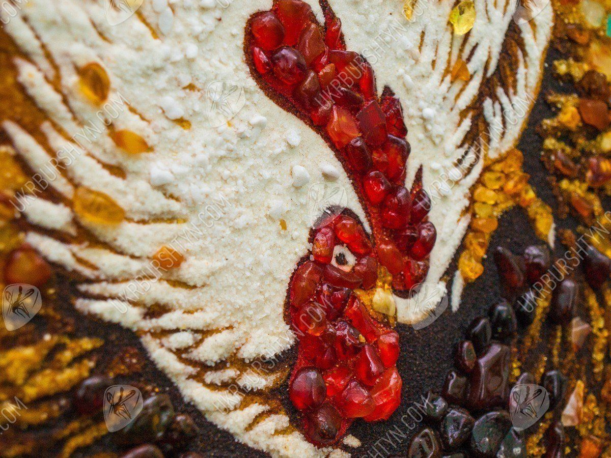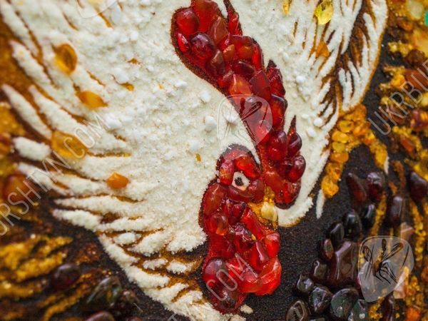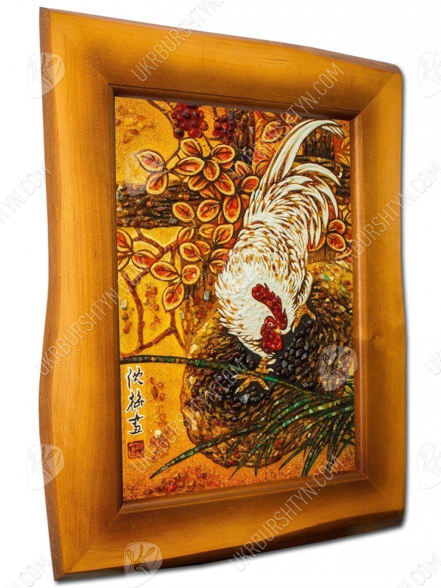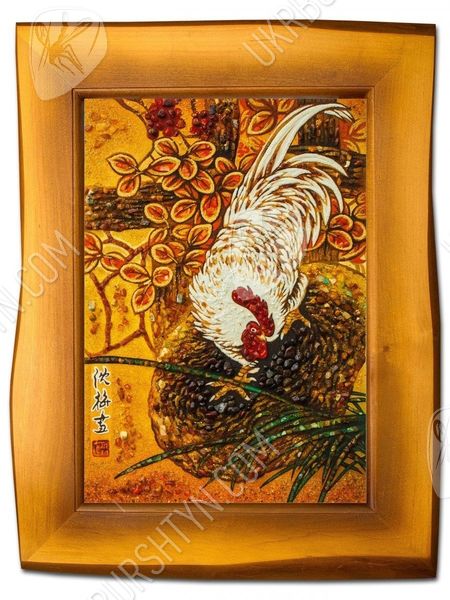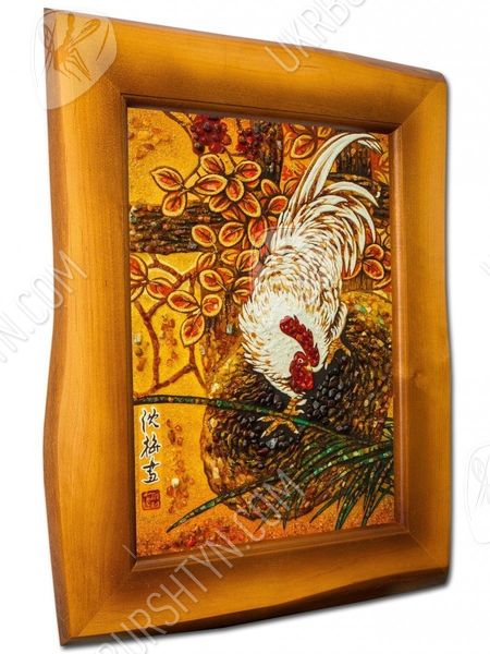 Авторское изображение петуха инкрустировано янтарем. Петух – положительный символ по фен-шуй, он приносит богатство и славу. Если вы – владелец бизнеса или просто хотите стать известным, активируйте энергию славы и удачи с помощью данной картины. Кроме того, петух помогает предотвратить супружескую неверность, нейтрализовав «третью сторону».
