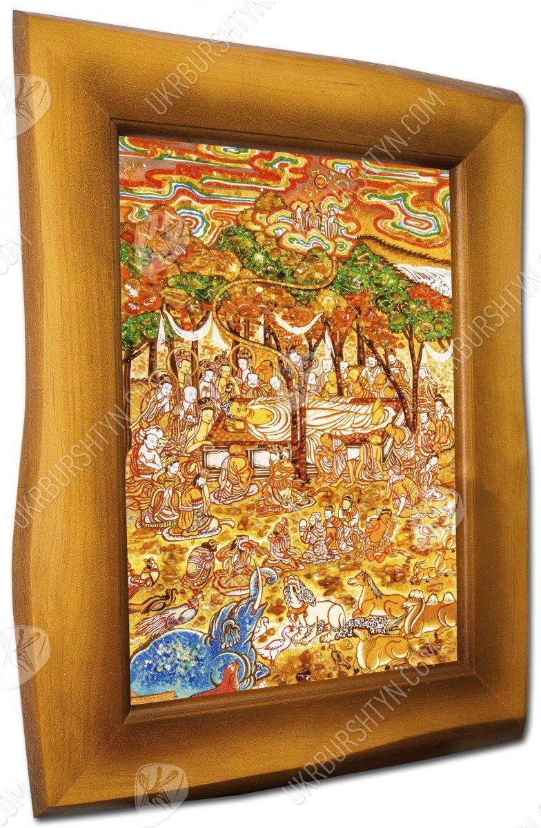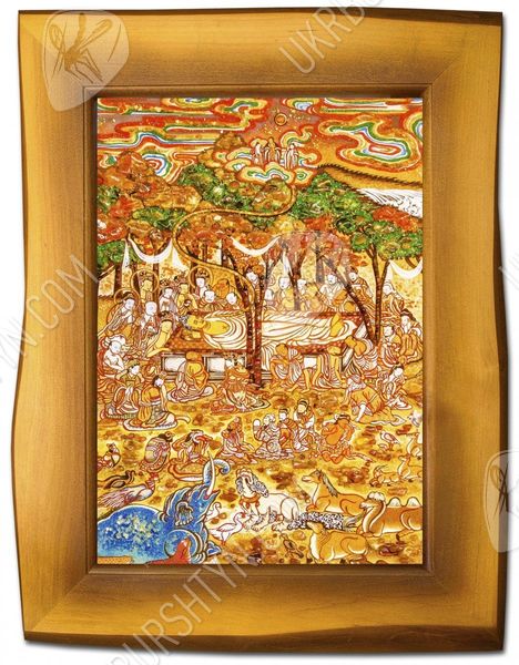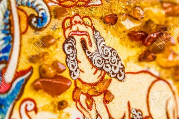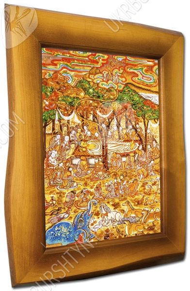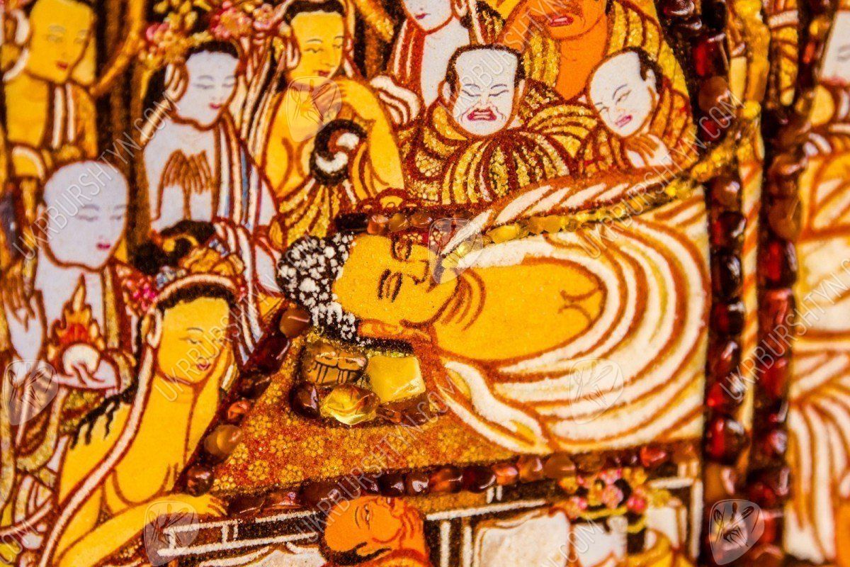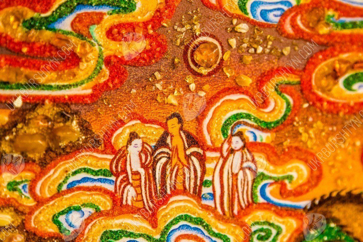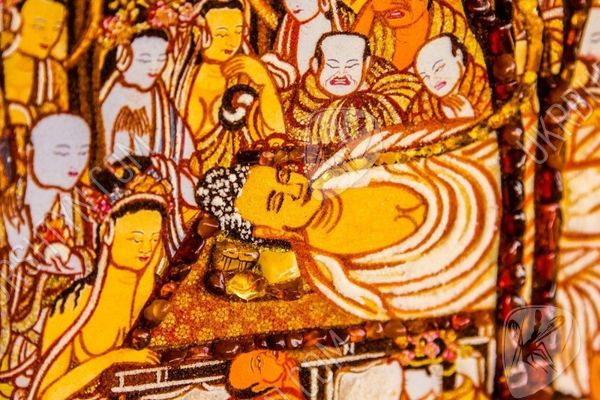 Сегодня много работ посвящено китайской тематике, ставшей очень популярной. Многие художники «Янтарь Полесья» не обошли эту тему стороной. Такие янтарные картины обладают духовной силой, их наполняет глубокий смысл. Каким бы ни было изображение Будды, в какой бы позе он не прибывал, картина обязательно соответствует писанию, в ней учитываются самые мелкие классические детали.