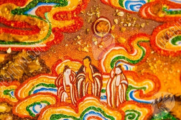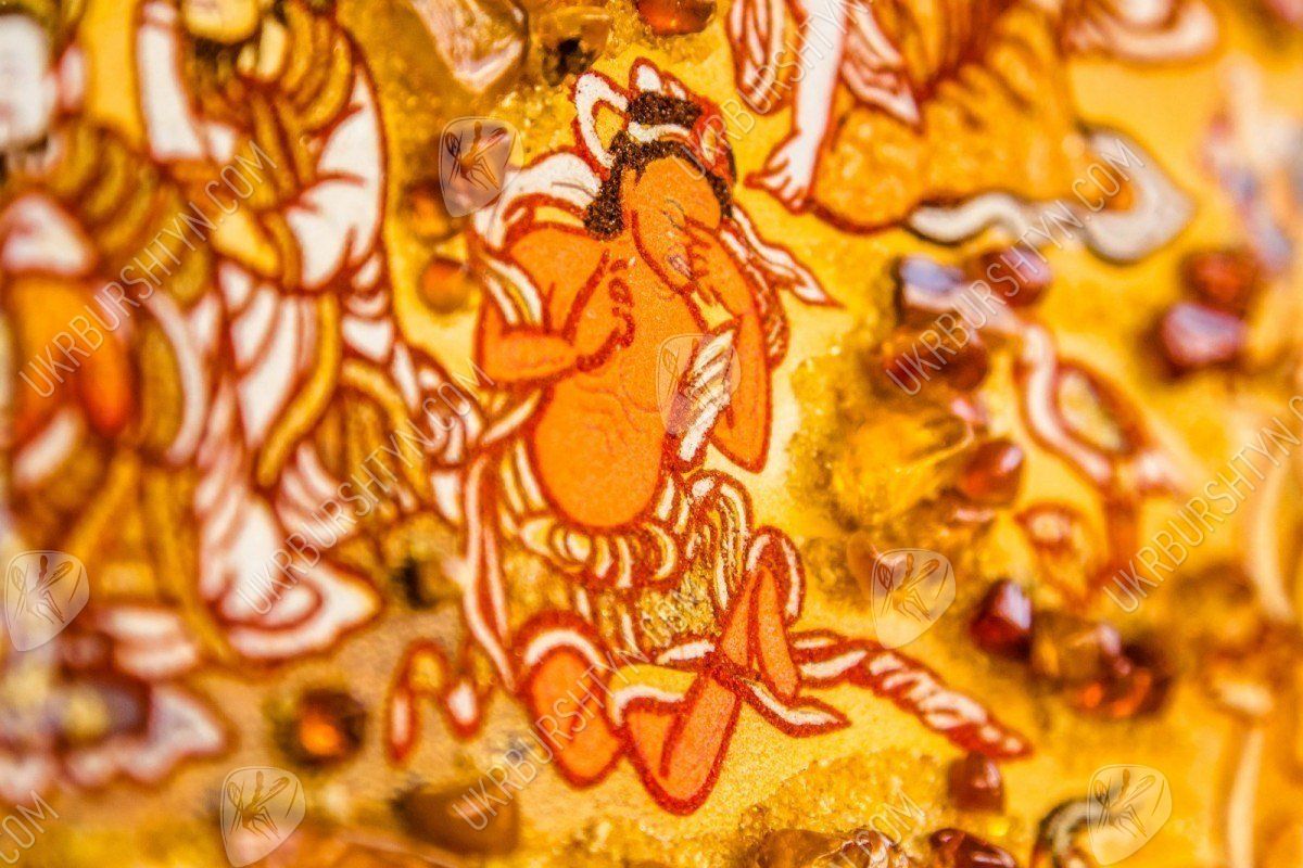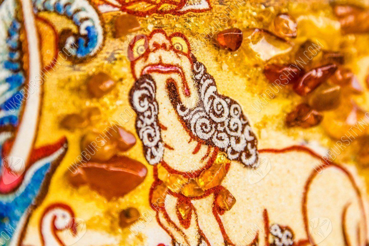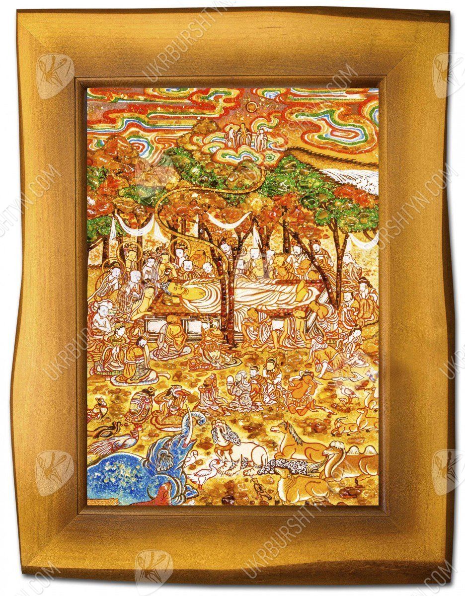 Сегодня много работ посвящено китайской тематике, ставшей очень популярной. Многие художники «Янтарь Полесья» не обошли эту тему стороной. Такие янтарные картины обладают духовной силой, их наполняет глубокий смысл. Каким бы ни было изображение Будды, в какой бы позе он не прибывал, картина обязательно соответствует писанию, в ней учитываются самые мелкие классические детали.