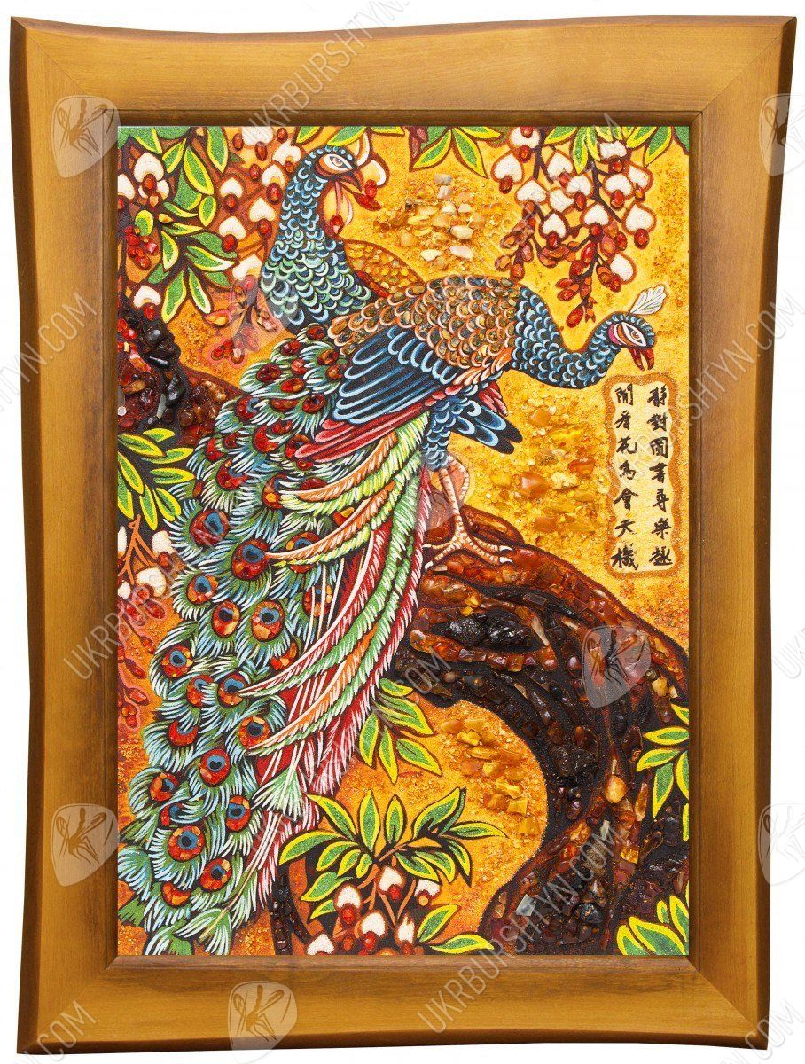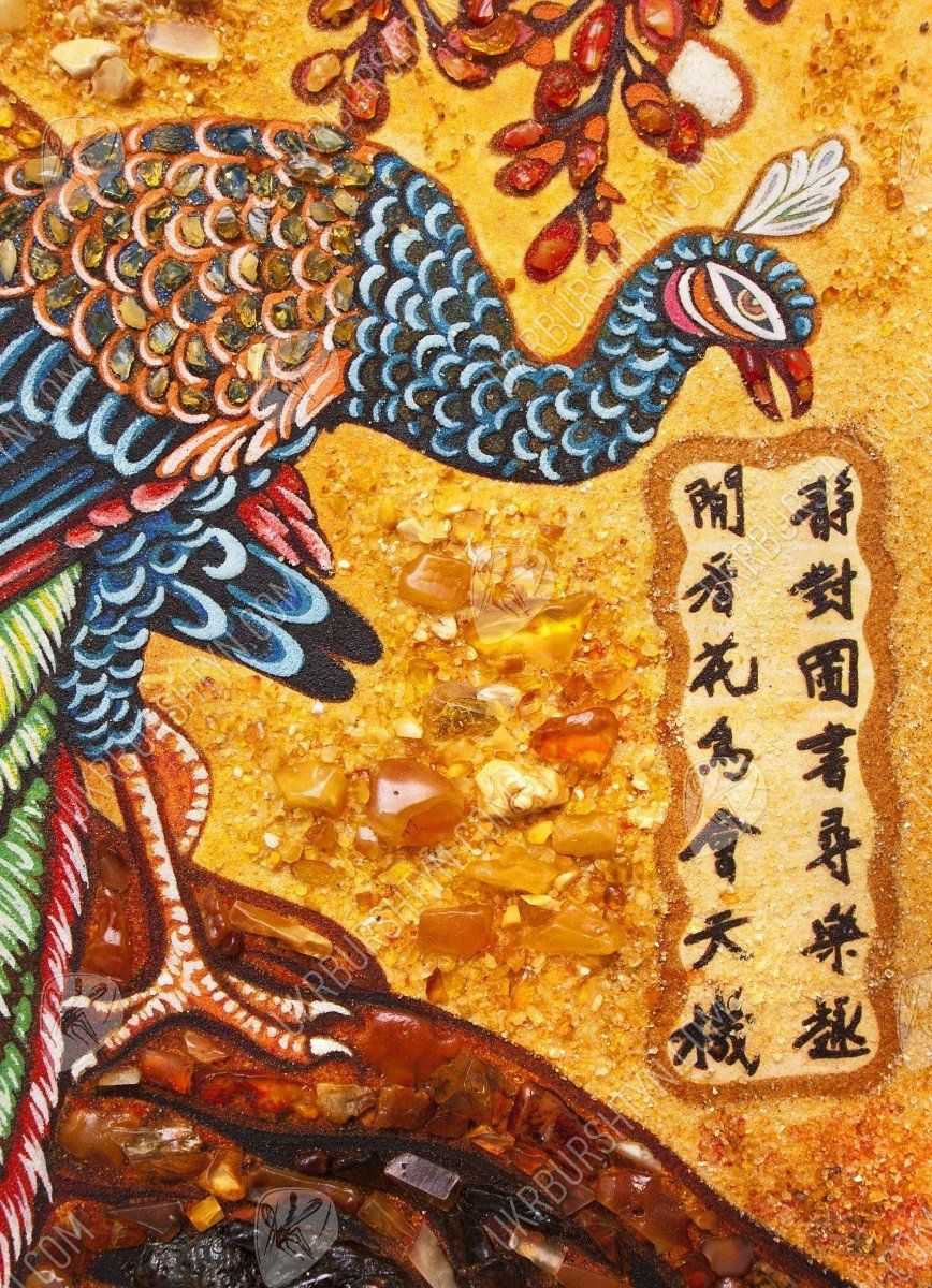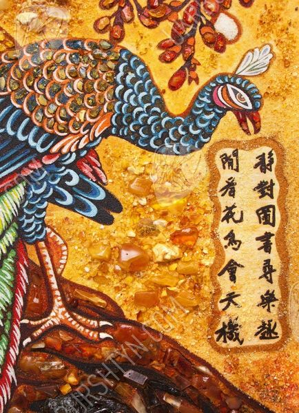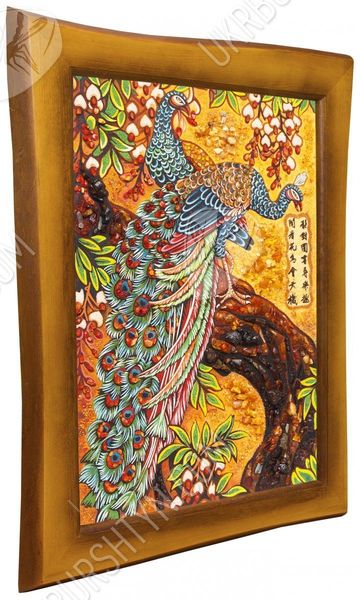 Желаете купить панно, которое было бы одновременно привлекательным, качественным и с интересным сюжетом? Тогда обратите внимание на этот экземпляр, повторяющий содержание одной из традиционных китайских картин. Павлины, отдыхающие в саду, символизируют материальный достаток, благосостояние и удачу, а использованный для их создания янтарь придаёт картине восхитительную атмосферу летнего полудня. Драгоценные камни и крошка имеют насыщенный золотистый оттенок, но есть и более тёмные, изображающие тени на стволе дерева. Они плотно прикреплены к основе, что позволяет не переживать за надёжность произведения. Будьте уверены: это восхитительное панно будет радовать вас много-много лет!