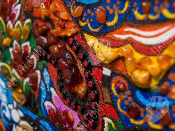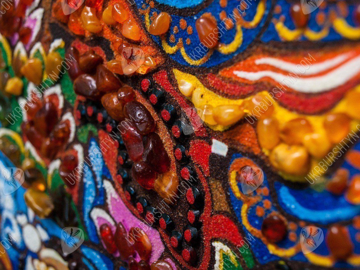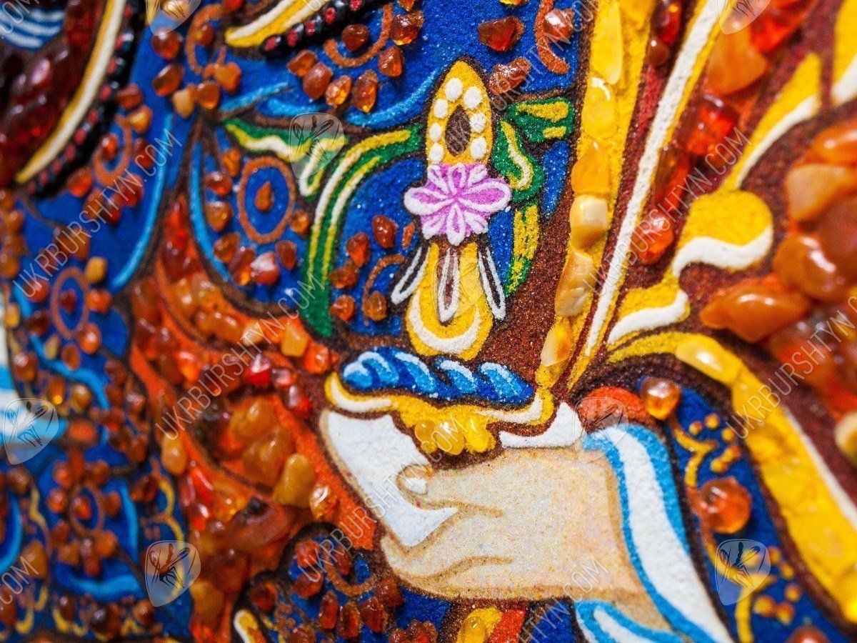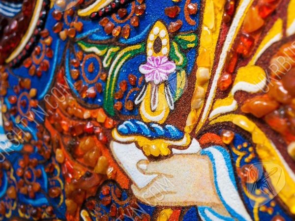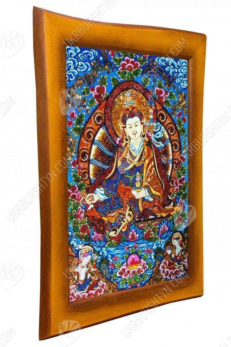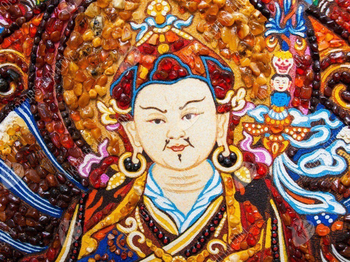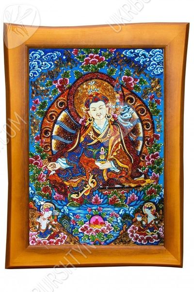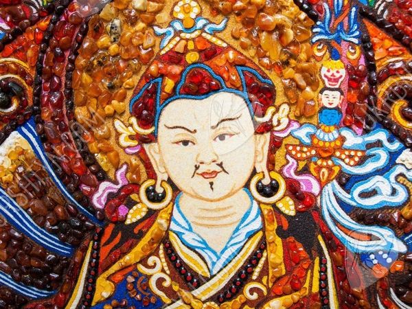 В Китае издавна почитали мастеров, знающих, как рисовать тханки. И неудивительно, ведь такие картины должны способствовать медитации, облегчать духовное совершенствование, помогать достичь просветления. Но теперь Вы можете купить картины из янтаря, выполненные согласно всем канонам древнего искусства – к ним принадлежит и это произведение. Алые, золотистые, шафрановые и коричневатые самоцветы образуют сложный узор, переливающийся солнечными искрами – к нему так и хочется прикоснуться! А запечатлённый на этом панно гуру Ринпоче (Падмасамбхава) известен как защитник людей, помогающий им преодолеть все испытания, принять правильное решение и добиться успеха во всех начинаниях.