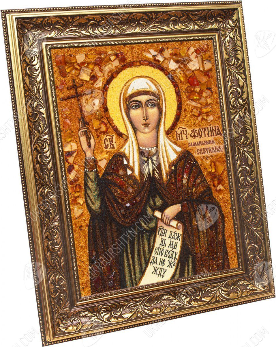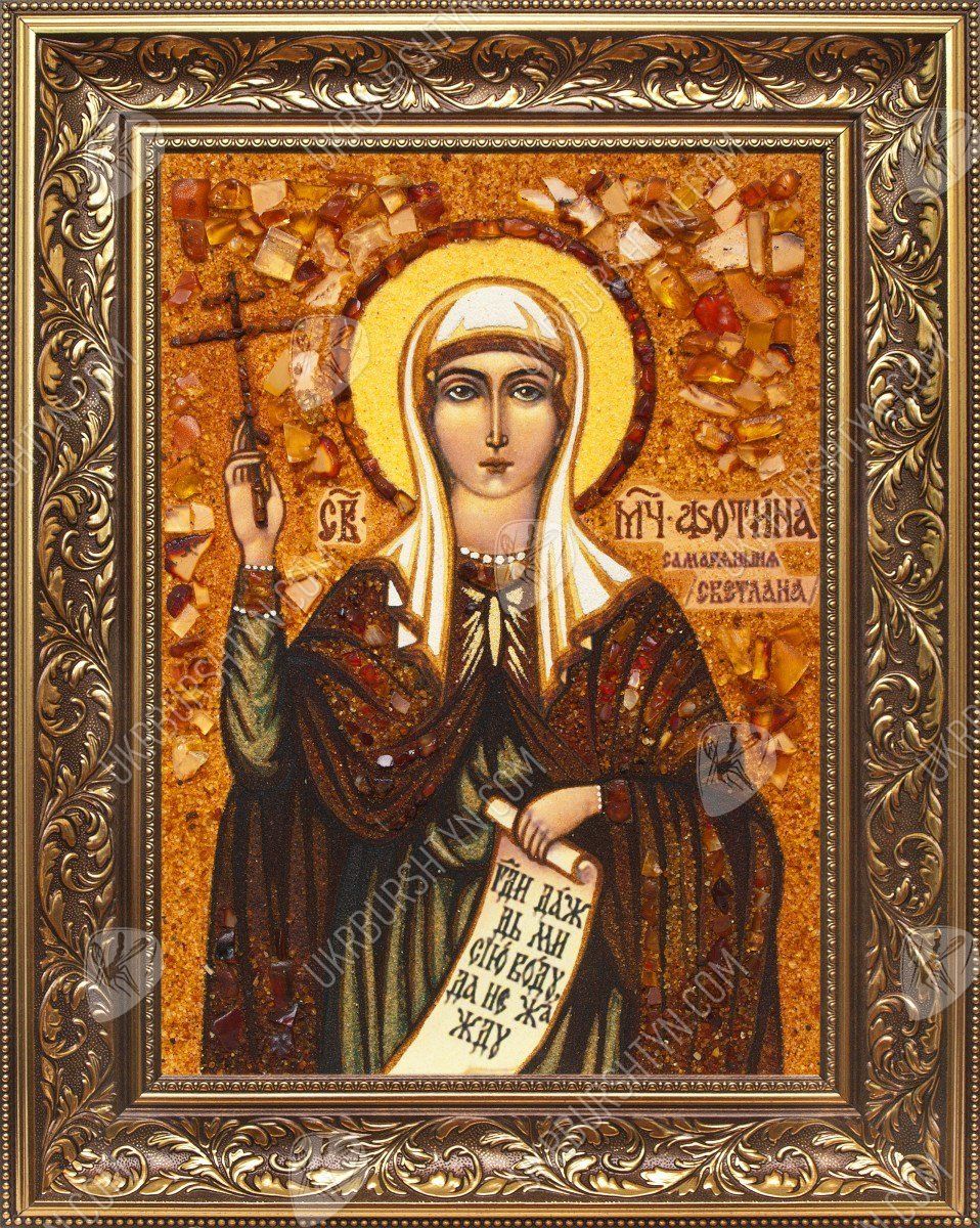 Всегда хочется, чтобы вручённый подруге подарок был не только оригинальным и качественным, но и полезным, помогал ей в сложную минуту и дарил новые силы. Именно таким сюрпризом станет икона из янтаря на день ангела! Светланы обрадуются, получив красочную, выразительную и одухотворённую реликвию, на которой запечатлена покровительствующая им святая. Мученица Фотина (Фотиния) Самаряныня удостоилась чести встретиться с Иисусом Христом ещё во время Его земной жизни. Слова Господа пробудили сердце женщины – и после Его смерти на кресте она начала проповедовать христианскую веру другим. Поэтому молитва перед образом напоминает о том, как важно творить добро и делиться своими знаниями с людьми.
