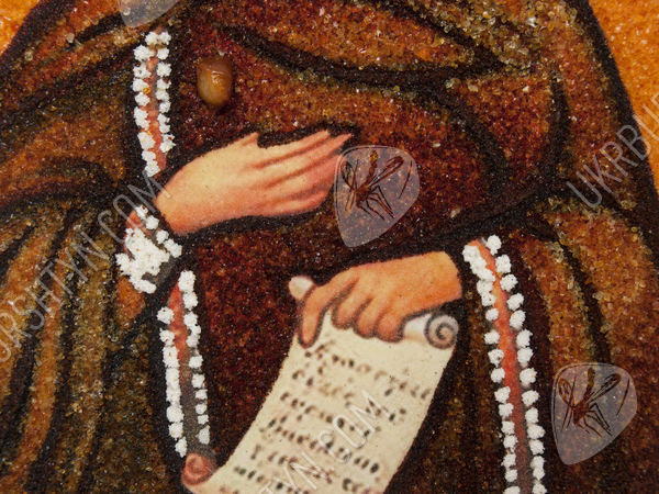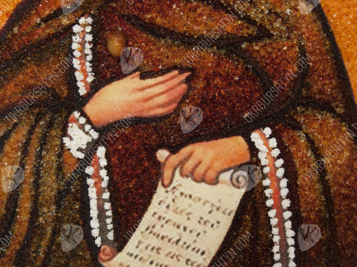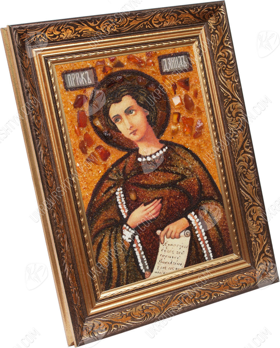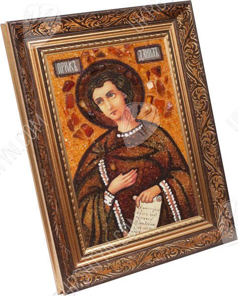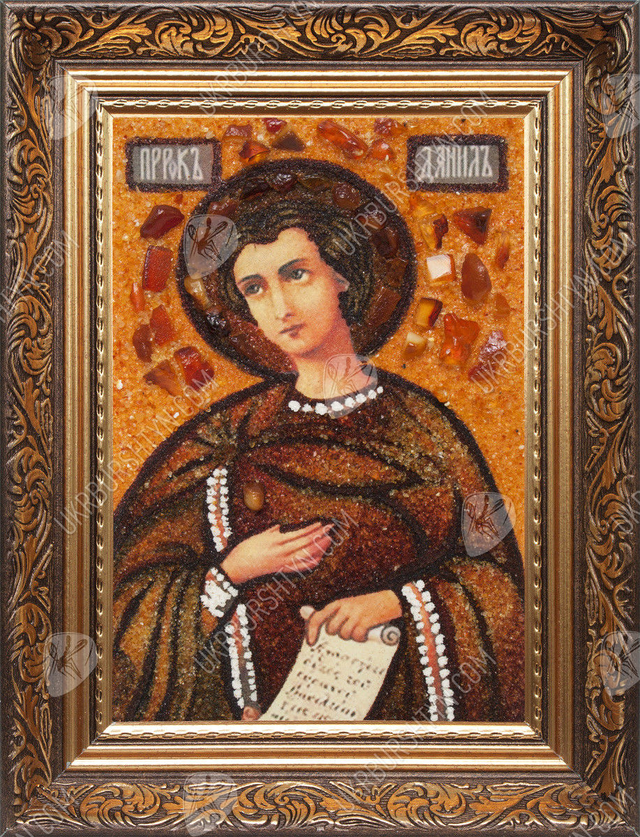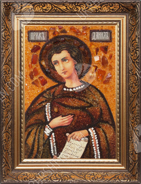Пророк Даниил, согласно сказаниям, при жизни был наделен даром прорицания. Является покровителем мудрости и справедливости. Представленная икона выполнена из натурального лечебного янтаря. Авторская работа столь изысканная и в то же время роскошная, что не оставляет равнодушным никого. Изделие станет ценным подарком для родных и близких. Святыня сохранит уют домашнего очага, защитит от горя и ненастья, избавит от душевных мук и терзаний. Декоративная рамка удачно подчеркивает общую композицию сего шедевра. Он хорошо будет смотреться в спальне или гостиной, кабинете и даже в офисе. Солнечный камень убережет от болезней, несчастья, внесет в жизнь гармонию и любовь.