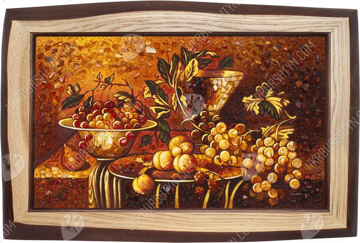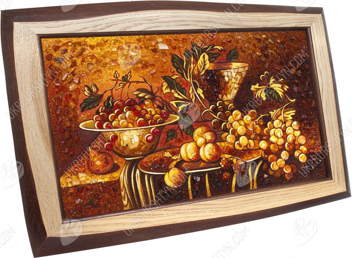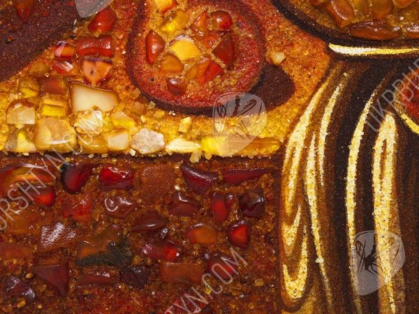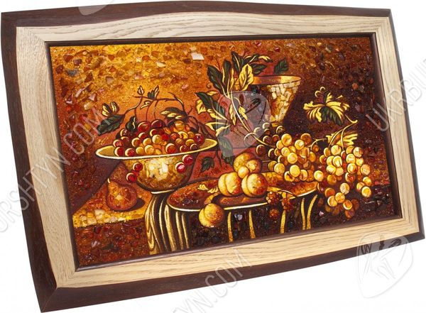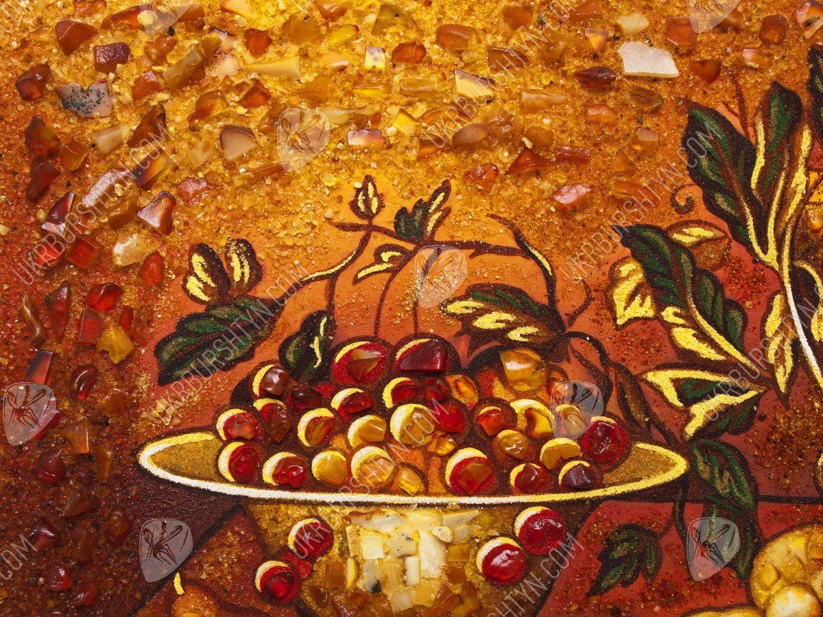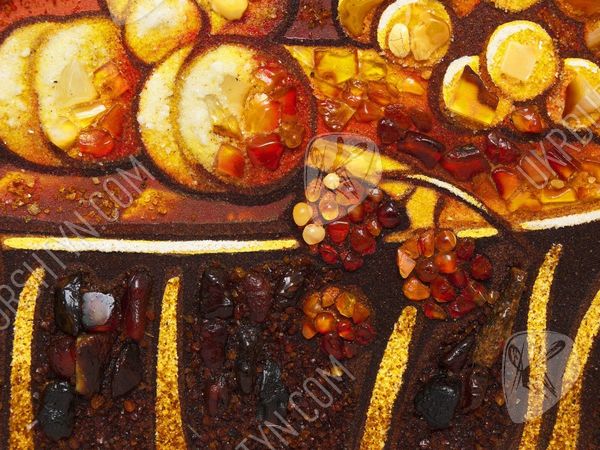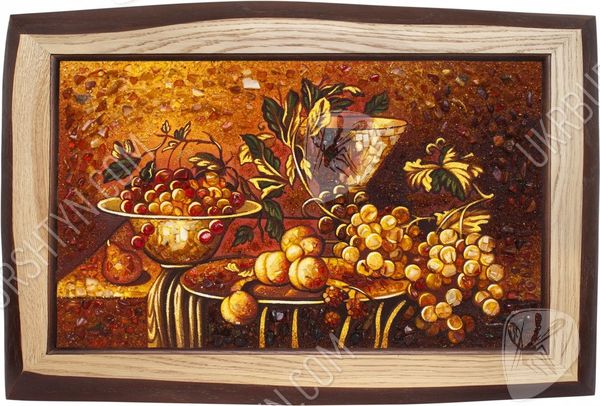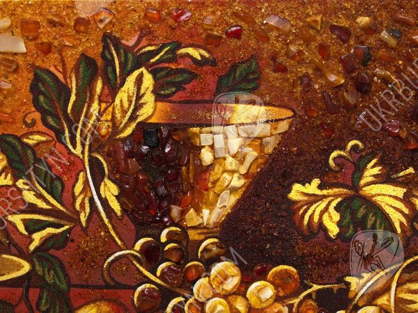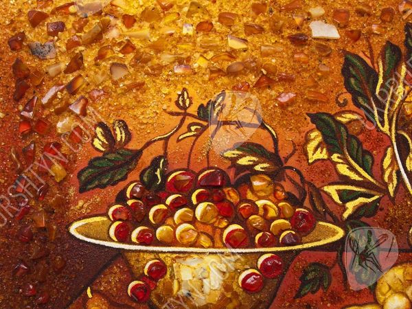 Согласно, популярному в Китае, фэн-шую, помещения типа столовой, считаются стихией дерева и пламени. Янтарный натюрморт полностью повторяет цветовую палитру данной стихии. Здесь присутствуют переливы коричневого цвета, много оттенков золотого.