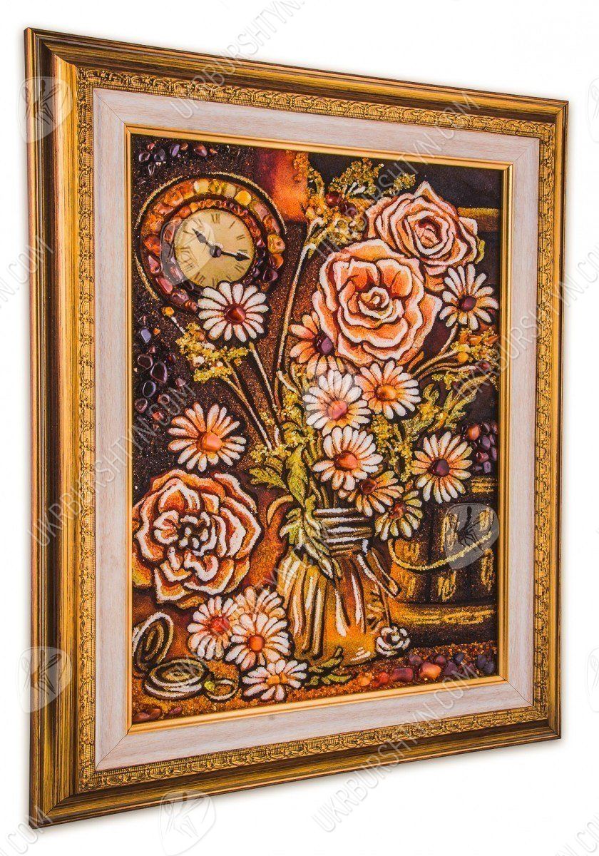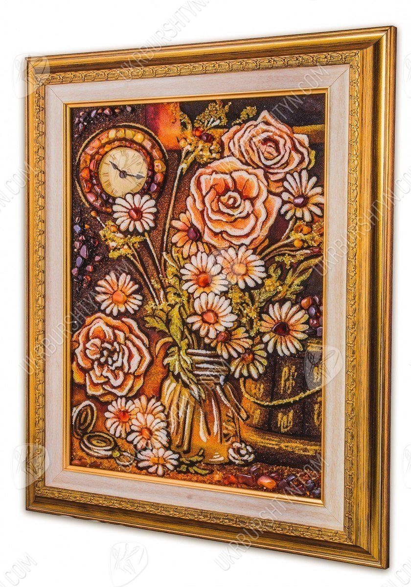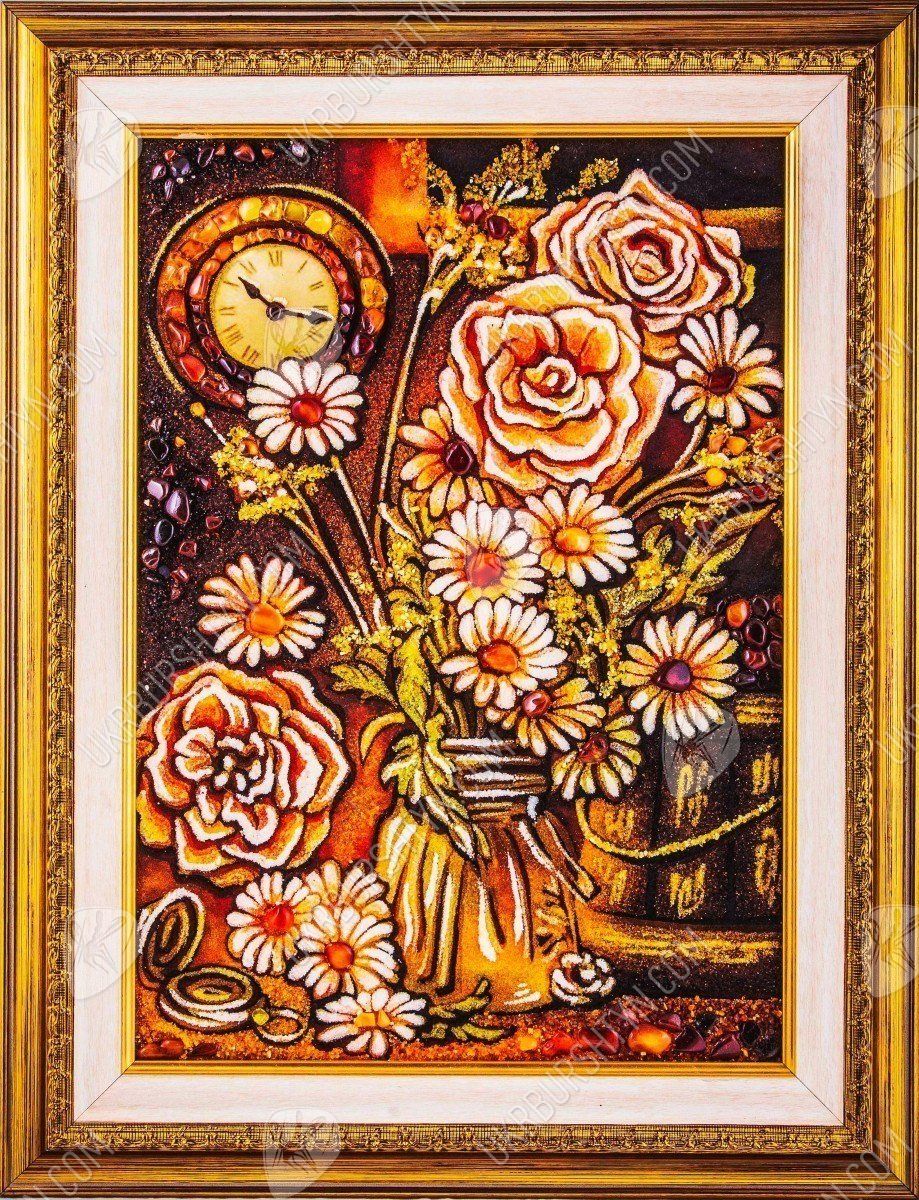 Такая янтарная картина, с изображением цветов, будет всегда напоминать, что вечными остаются скромность и красота.