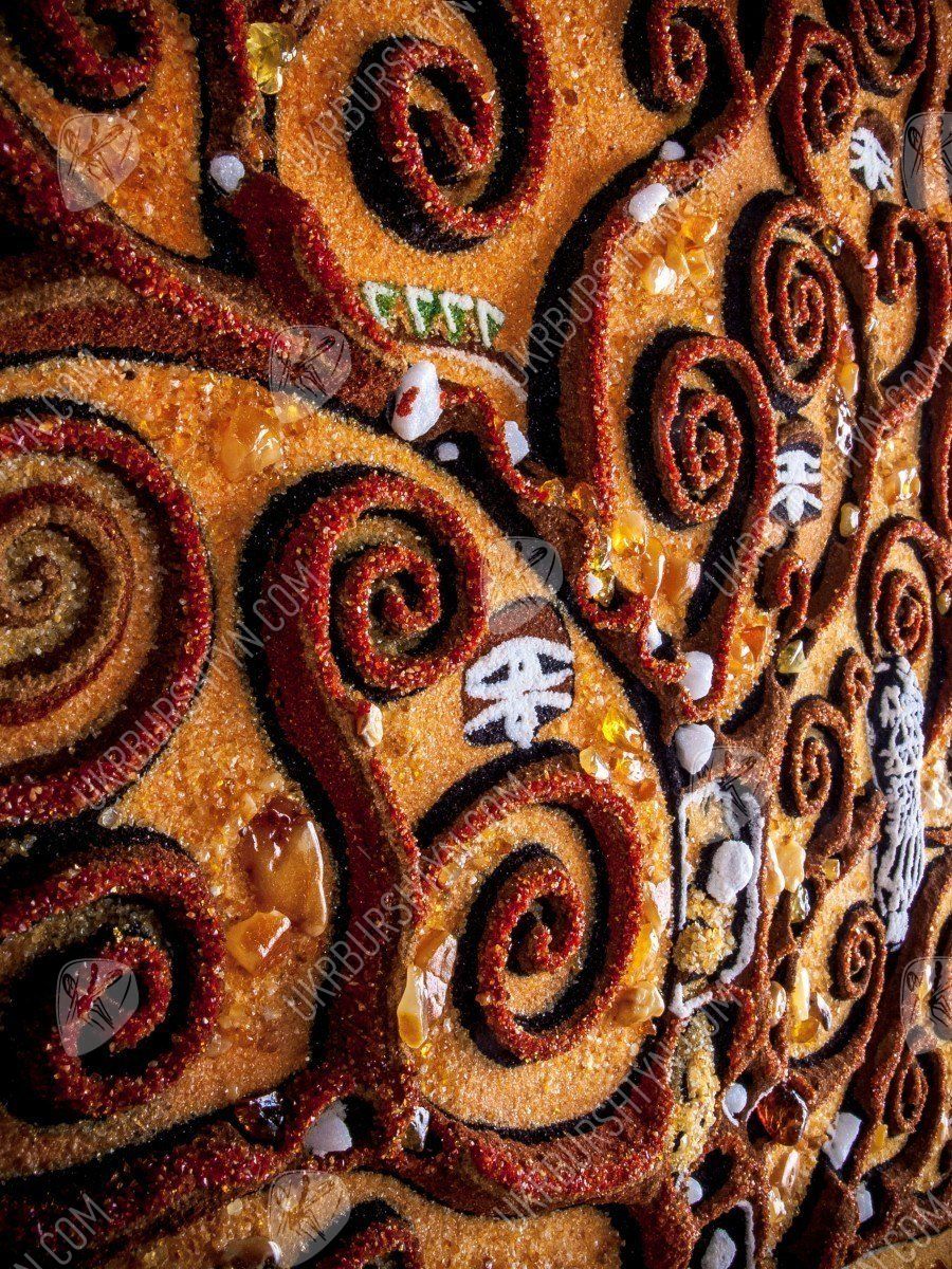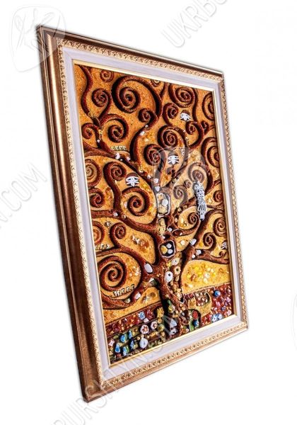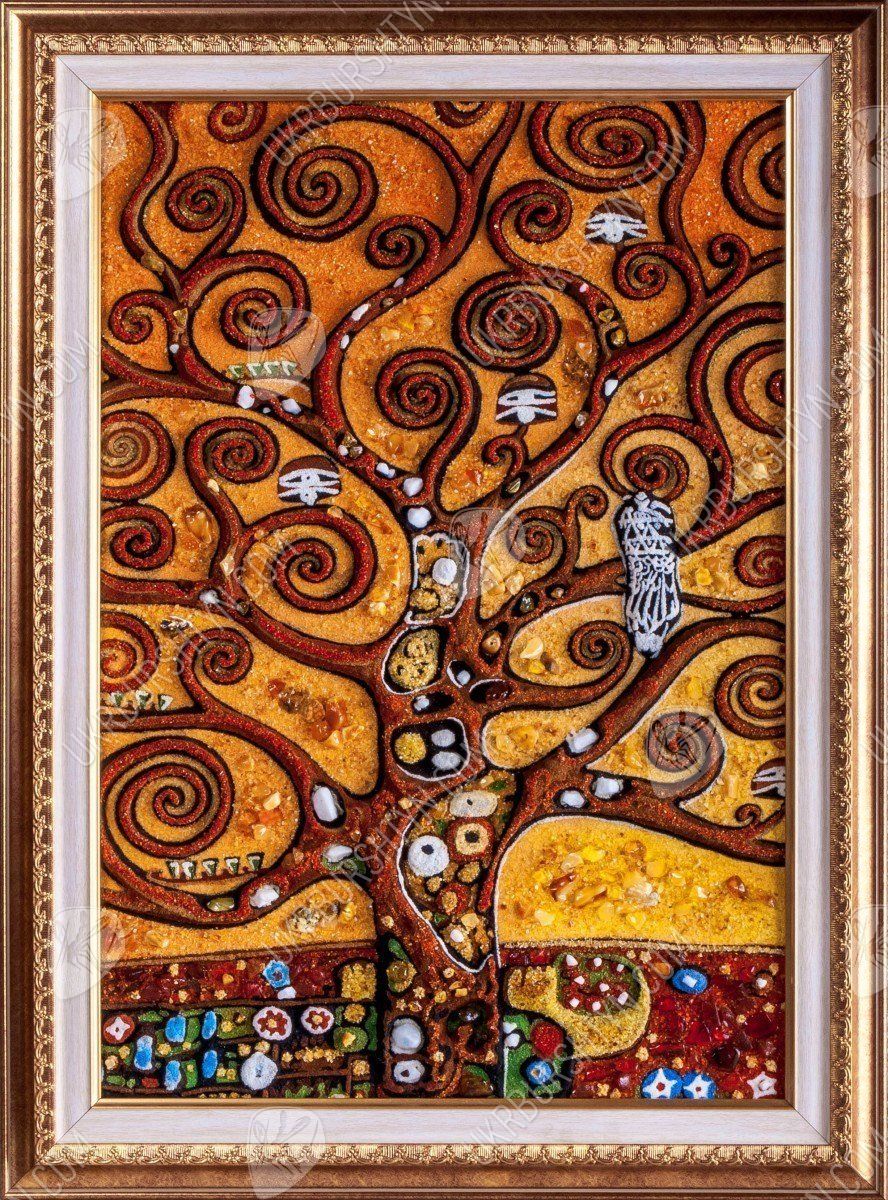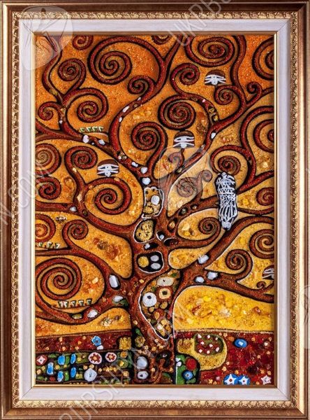 Благодаря янтарному камню можно добиться красочности и отличной живописности изображения. Примером такой объемности может служить картина «Дерево жизни» (Древо жизни), сделанная из янтаря. Работа полностью сделана вручную. С очень высокой точностью были воспроизведены малейшие детали картины.