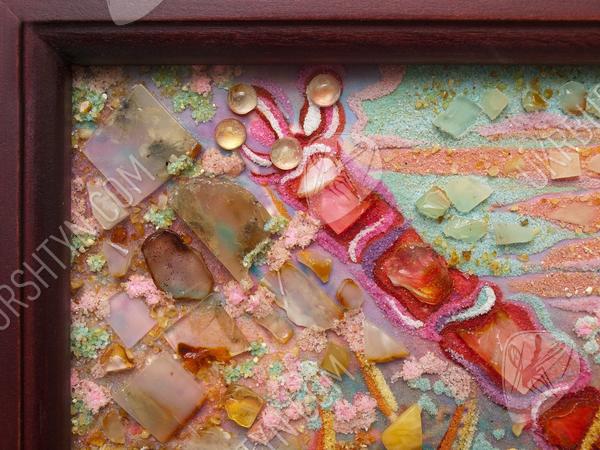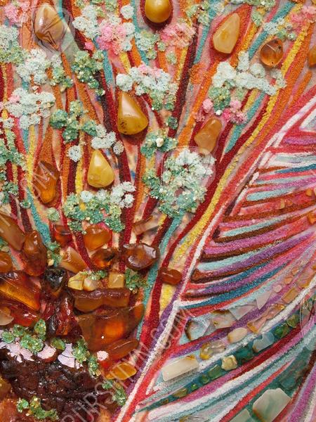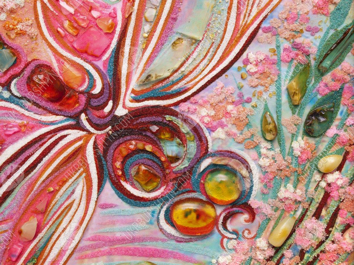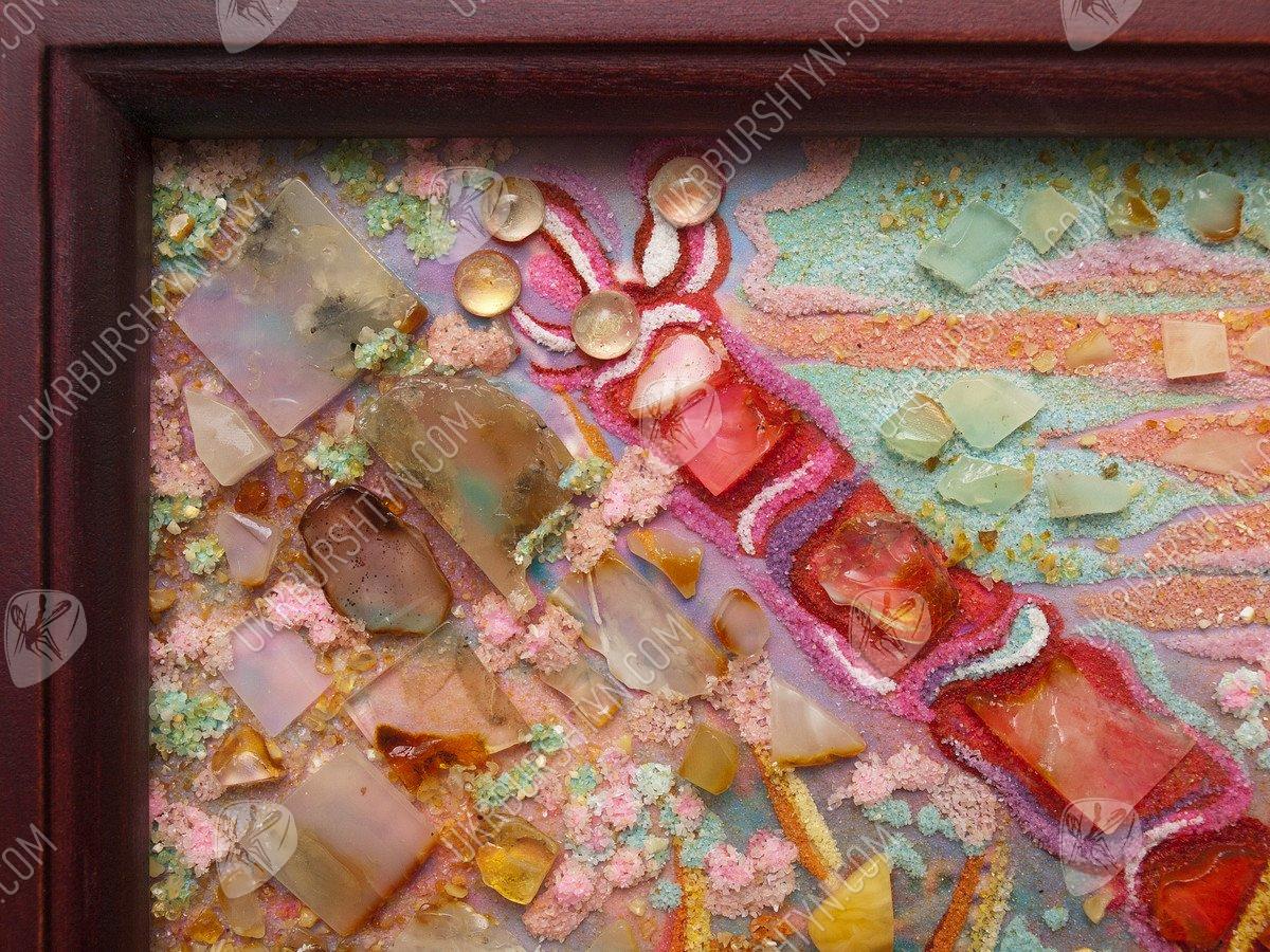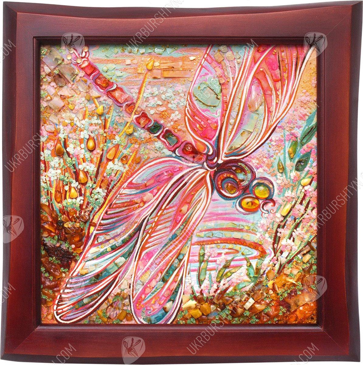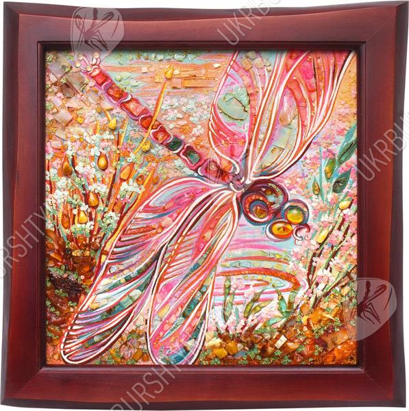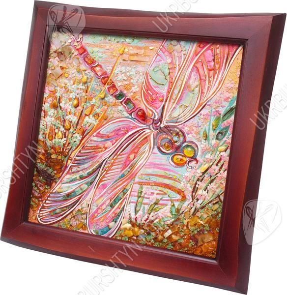 Хотите купить подарок ручной работы для романтичного и мечтательного человека, любящего гармонию и красоту? Это авторское панно окажется идеальным сюрпризом! Мастер запечатлел стремительно летящую стрекозу на фоне цветущих трав и кустов. Произведение выглядит стильно и привлекательно благодаря необычному материалу – натуральный полесский янтарь сияет золотистыми, оранжевыми, шафрановыми искрами. Есть здесь и оливковые, и розоватые, и бледно-кремовые самоцветы. А самые тонкие нюансы форм и тонов воссозданы посредством мелкой каменной крошки. Подобные картины для гостиной – настоящая находка для тех, кто ценит оригинальную игру оттенков или же любит милые и эксклюзивные вещицы.