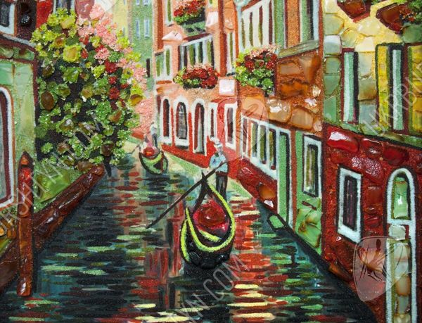 В моду входят тематические интерьеры, посвященные какой-либо идее. Но эта эксклюзивная янтарная картина «Венеция» будет уместной и в «европейском» дизайне, и среди декора, напоминающего о путешествиях!
