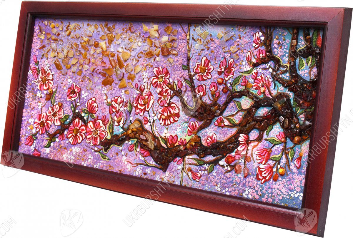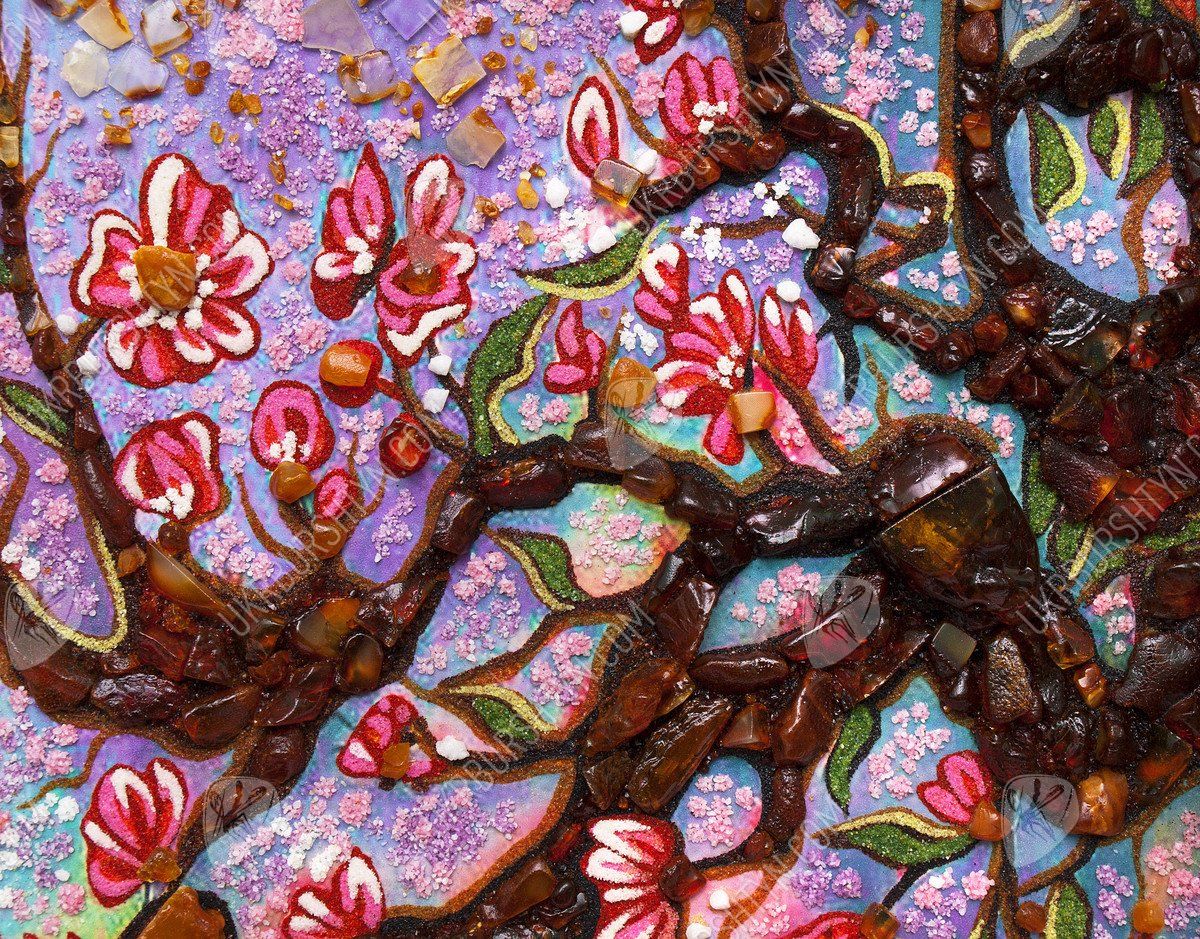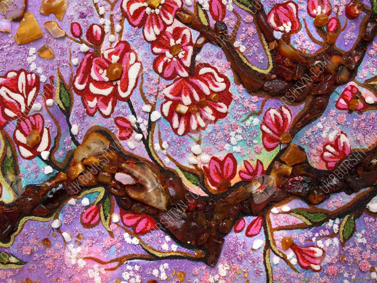Ваш ребёнок идёт в первый класс? Поздравьте его с этим знаменательным событием, приобретя новые картины в детскую. И одной из них может стать это авторское панно, изготовленное из натурального полесского янтаря. Золотистые, шафрановые, кремовые, розоватые тона каменной крошки, из которой сделаны нежные цветы, оттеняет ветка, выложенная из тёмно-коричневых и терракотовых самоцветов. Цельные кусочки окаменевшей смолы слегка выдаются над поверхностью работы, придавая ей рельефность, объём и реалистичность. А из-за того, что в Японии сакура в интерьере олицетворяет молодость, пробуждение, новое начало, удачу и красоту, подобный сюрприз будет не только оригинальным, но и символичным.