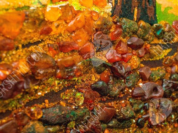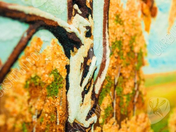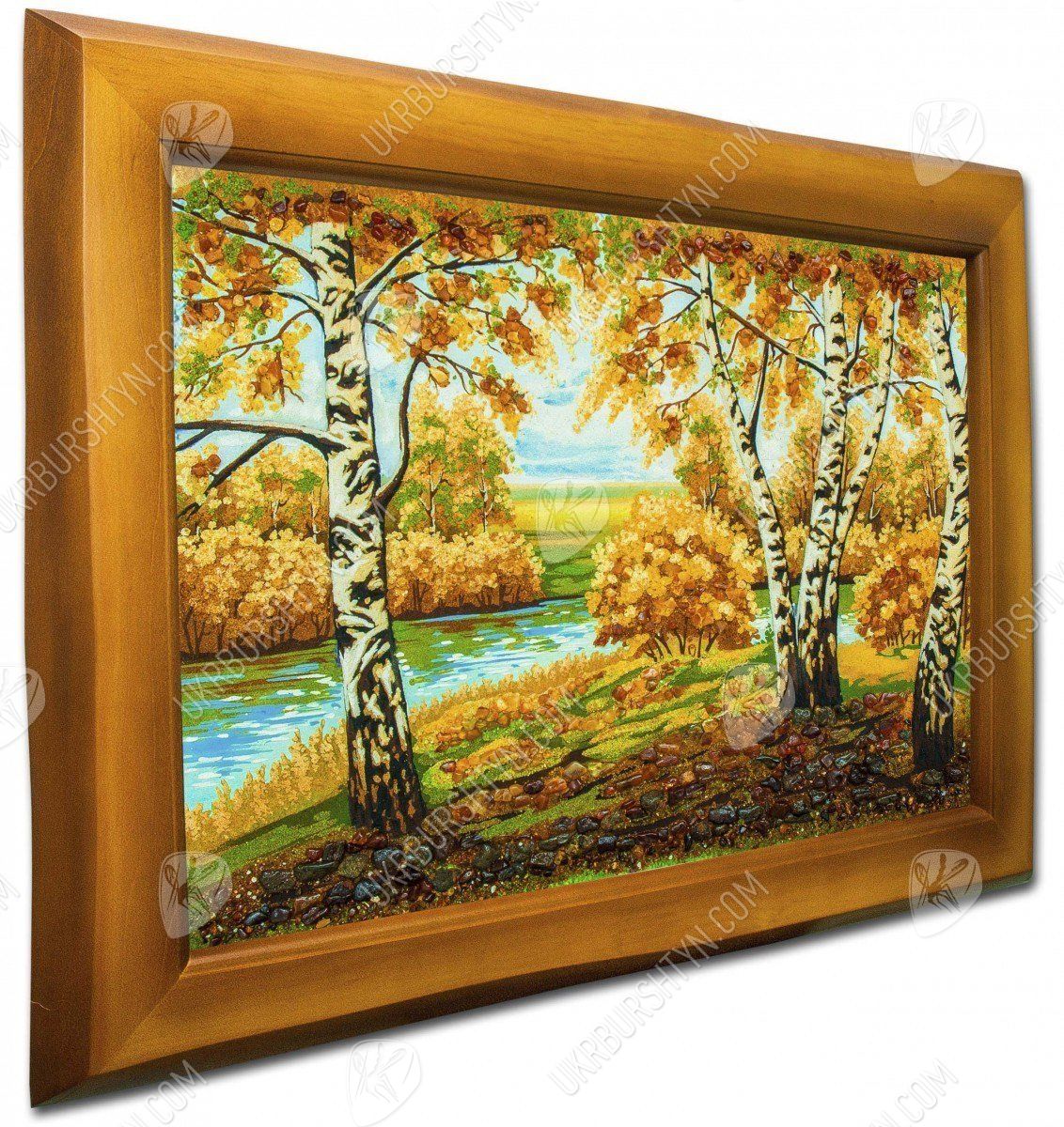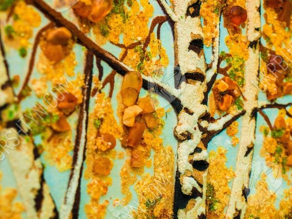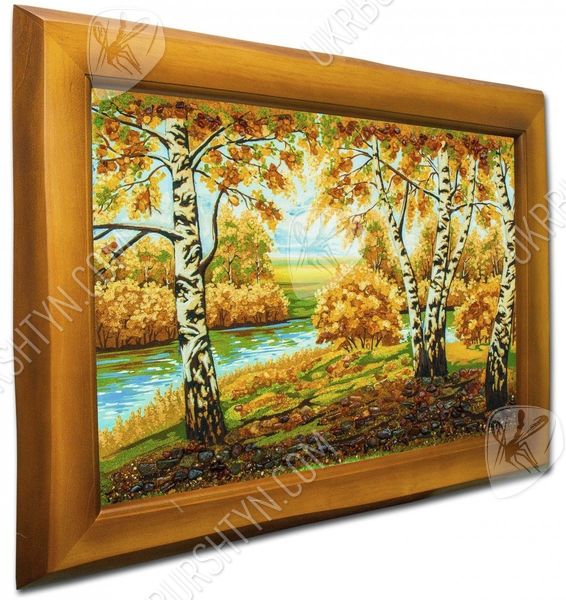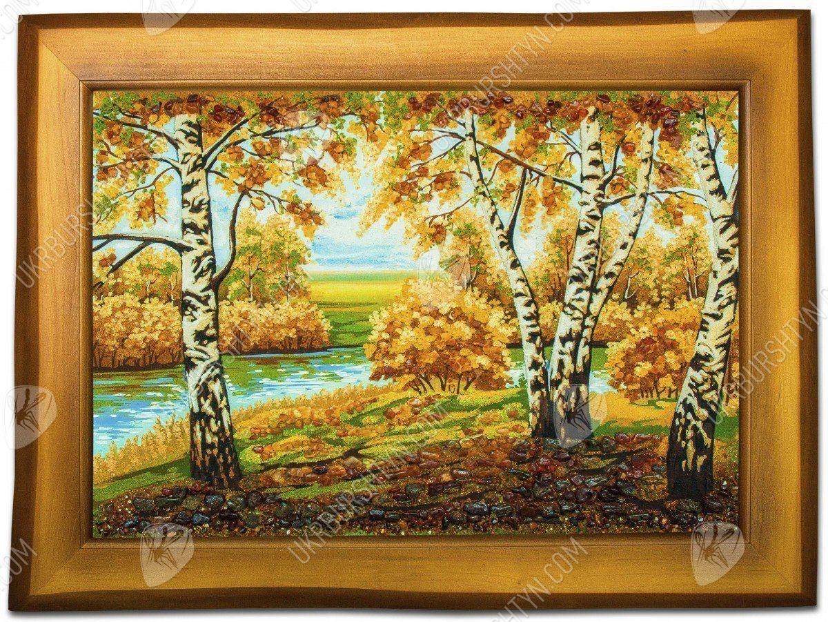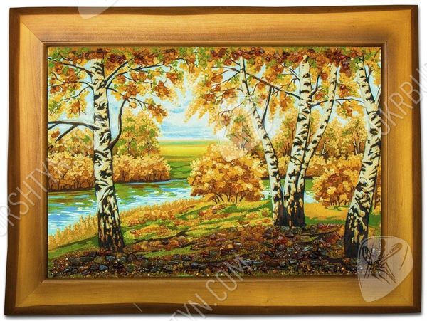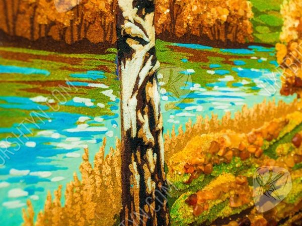 Река в березовой роще, за которой виднеется горизонт близкое сердцу изображение, навевающее ностальгическое настроение. Солнце стоит в зените, проникая сквозь кроны деревьев и заливая своим светом опушку на берегу. Янтарь, которым украшено полотно, четко и точно передает каждый оттенок изображения, будь то пожелтевшие листья или еще зеленая трава. Янтарные полотна – новый тренд в мире декора помещений. Они гармонично дополняют любой интерьер и привносят в домашнюю атмосферу уют и чувство благоустроенности.