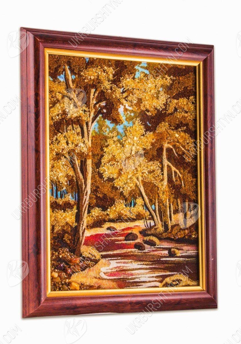 Картина «Лесной пейзаж» живописно украшена янтарной крошкой бежевых и коричневых тонов и выложена изумительной красоты целостными самоцветами лучезарного камня. Настоящее полотно станет чудесным декором для дома или офиса. Интернет-магазин ukrburshtyn.com предлагает самый широкий выбор картин из янтаря.