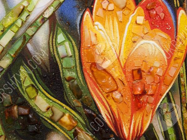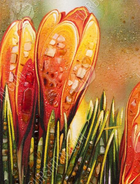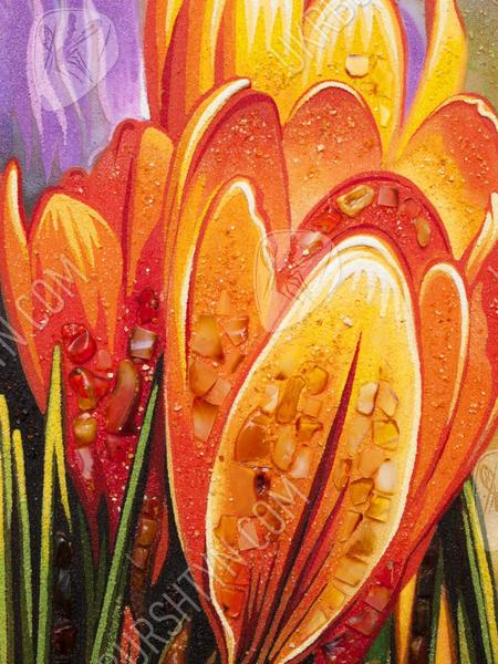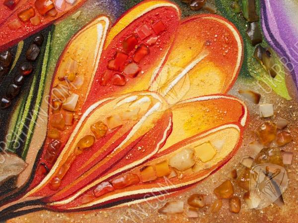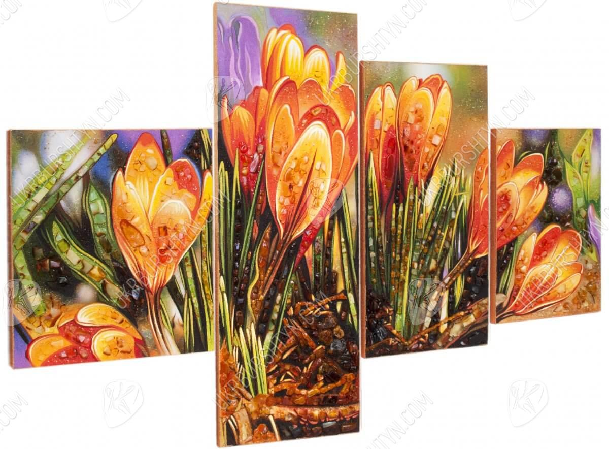 Модульные картины из янтаря – настоящая находка для тех, кто ценит небанальные, стильные и эффектные произведения искусства. К примеру, это панно, на котором запечатлены яркие шафрановые и сиреневые крокусы, окажется чудесным украшением для Вашей гостиной, столовой или комнаты отдыха!