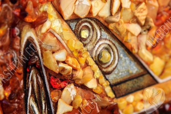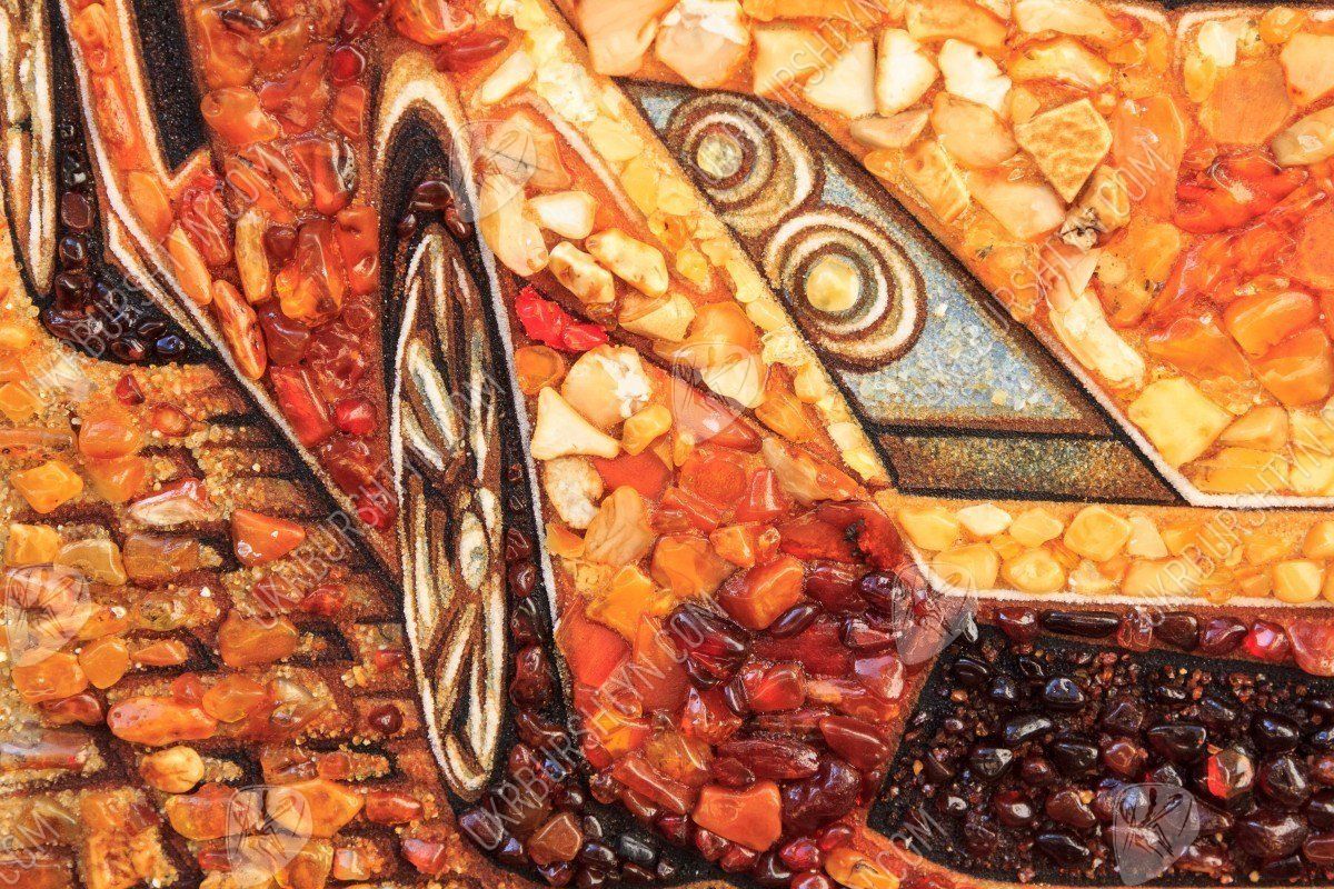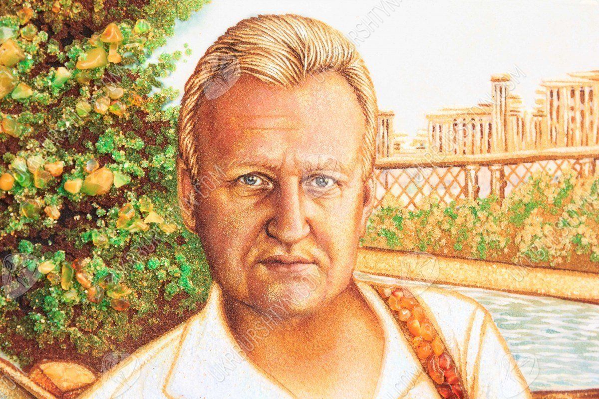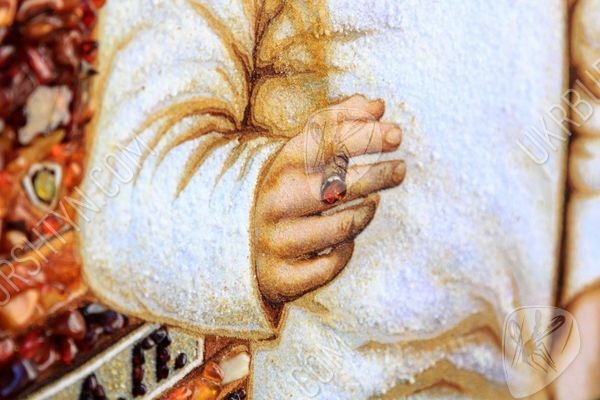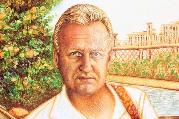Портрет на заказ – отличный шанс сохранить в памяти самые приятные моменты жизни! Подобные картины, вручную созданные из драгоценных камней, прочны и долговечны, а ещё являются чудесным украшением интерьера и желанным сюрпризом для многих людей. В панно скомбинирована мелкая самоцветная крошка и цельные кусочки застывшей смолы, поэтому оно получается объёмным и колоритным.