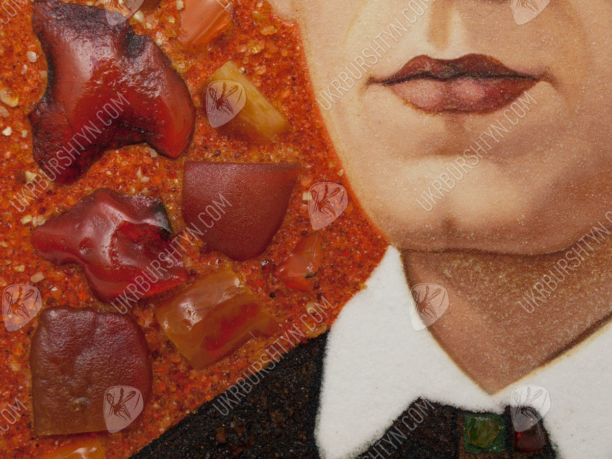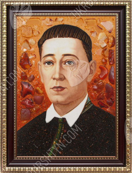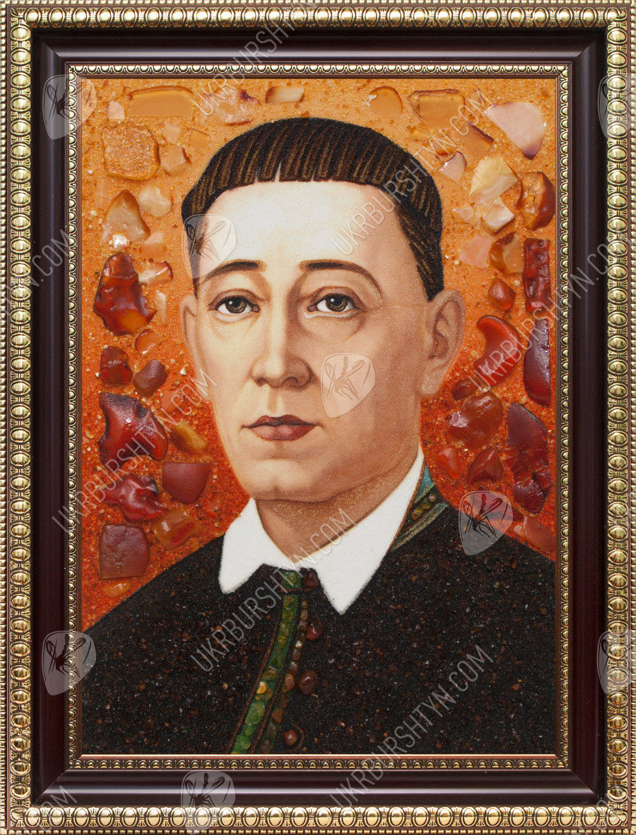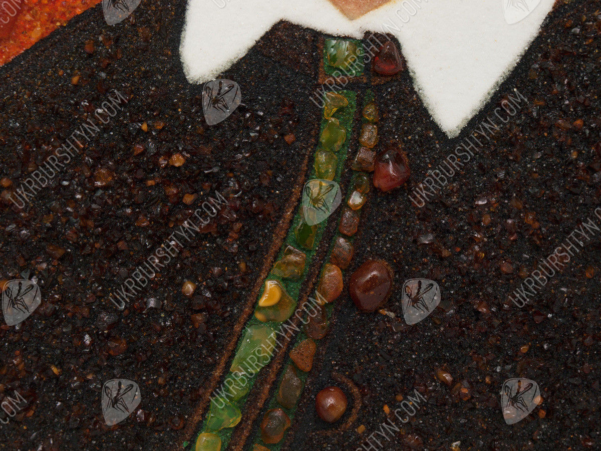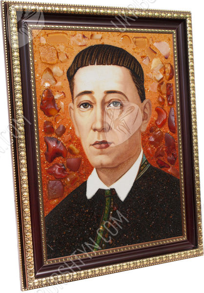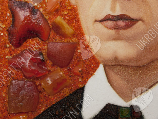 Григорий Сковорода – известный украинский странствующий философ, педагог, баснописец, который своим неустанным трудом сделал значительный вклад в развитие славянской культуры. Эксклюзивный сувенир из янтаря следует подарить ярым поклонникам творчества поэта, а также тем, кому его учения помогают идти по жизни уверенными шагами. Портрет выполнен из натурального камня, дополнительно декорирован стильной рамкой с золотыми узорами. Картина хорошо будет смотреться в кабинете любимого учителя, станет символом мудрости, самопознания, бытия. Авторская работа внесет особую атмосферу таинства и в ваш дом, украсит гостиную, разнообразит интерьер.