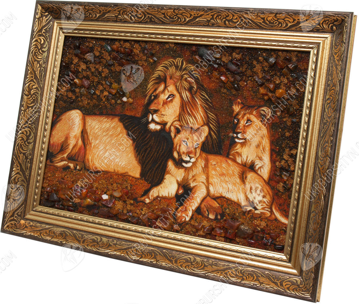 Янтарная картина выглядит весьма живописно, а если рассматривать ее с конкретного ракурса, то изображение становится объемным. Оттенки янтаря великолепно подходят для показа красоты львиной шерсти. Чтобы приобрести такую картину, нужно сделать заказ в Интернет-магазине. Картина будет доставлена по указанному адресу.