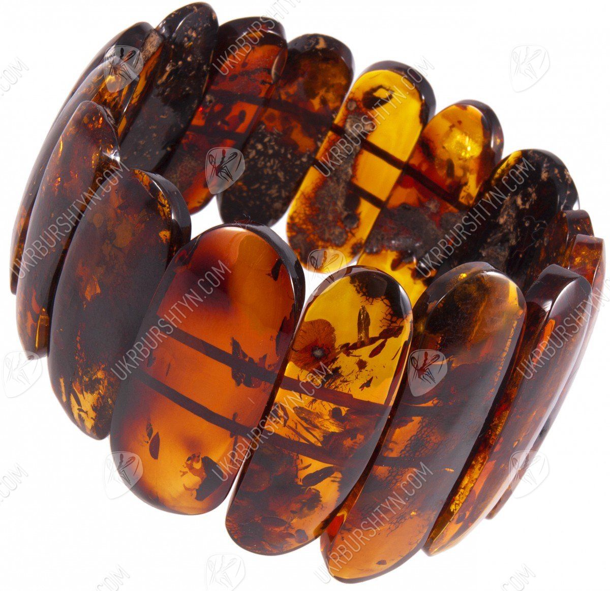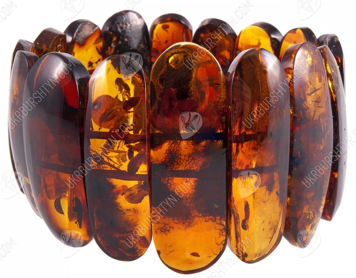 Роскошный массивный браслет из коричневого янтаря. Плоские прозрачные и полупрозрачные камни коньячного цвета собраны гармонично по форме и размеру. Каждый камень уникален в силу своей внутренней красоты, благодаря многообразию оттенков и узоров, созданных самой природой, которые застыли в их объятиях.
