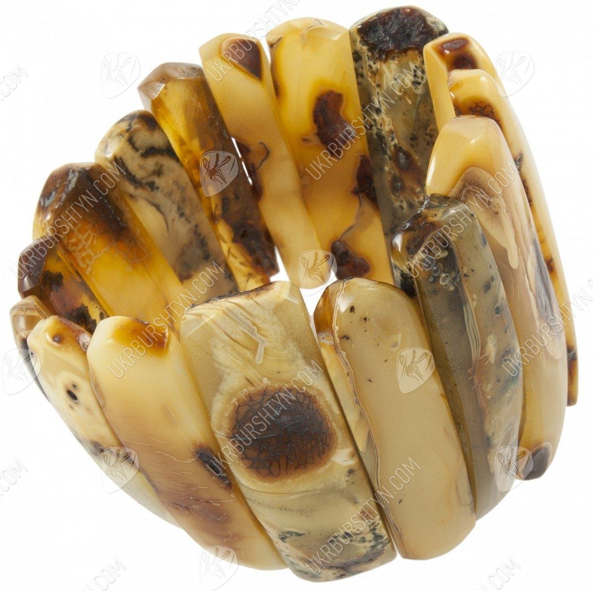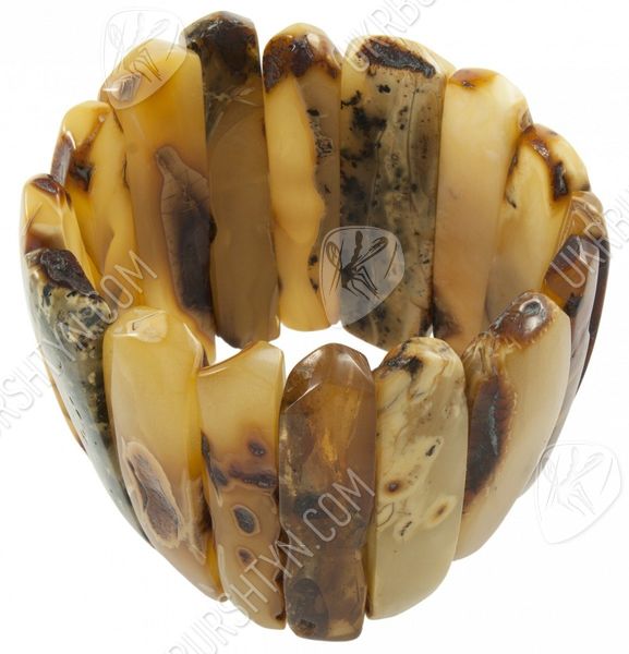 Правильно выбрать браслет из янтаря – это целое искусство, ведь он должен подходить не только к наряду, но и к вашей личности. Поэтому не стоит отказываться от действительно самобытных украшений, способных продемонстрировать ваши предпочтения и вкусы – например, таких, как этот браслет. В нём собраны длинные кристаллы воскового янтаря неправильной формы, напоминающие о дикой природе и её первозданной красоте. Изменения в структуре самоцвета, переливы тона, пятнышки и трещинки – всё это создаёт неповторимый образ, придаёт изделию собственную оригинальность и шарм. Надев его, вы сможете в любой момент полюбоваться скрытой красотой этих камней, предстающей в полном блеске лишь перед терпеливыми исследователями.
