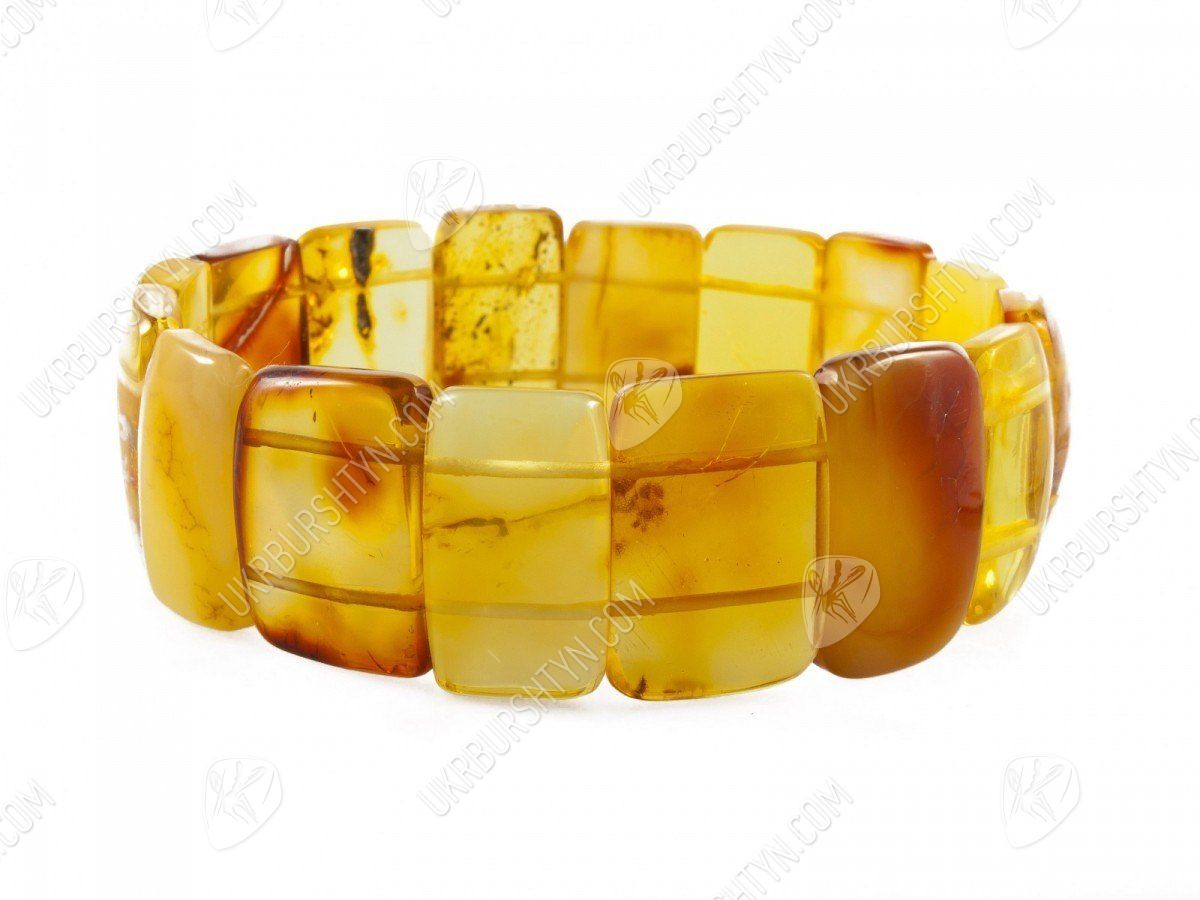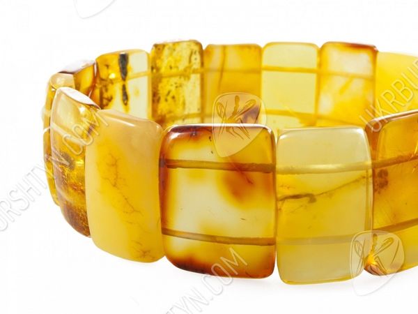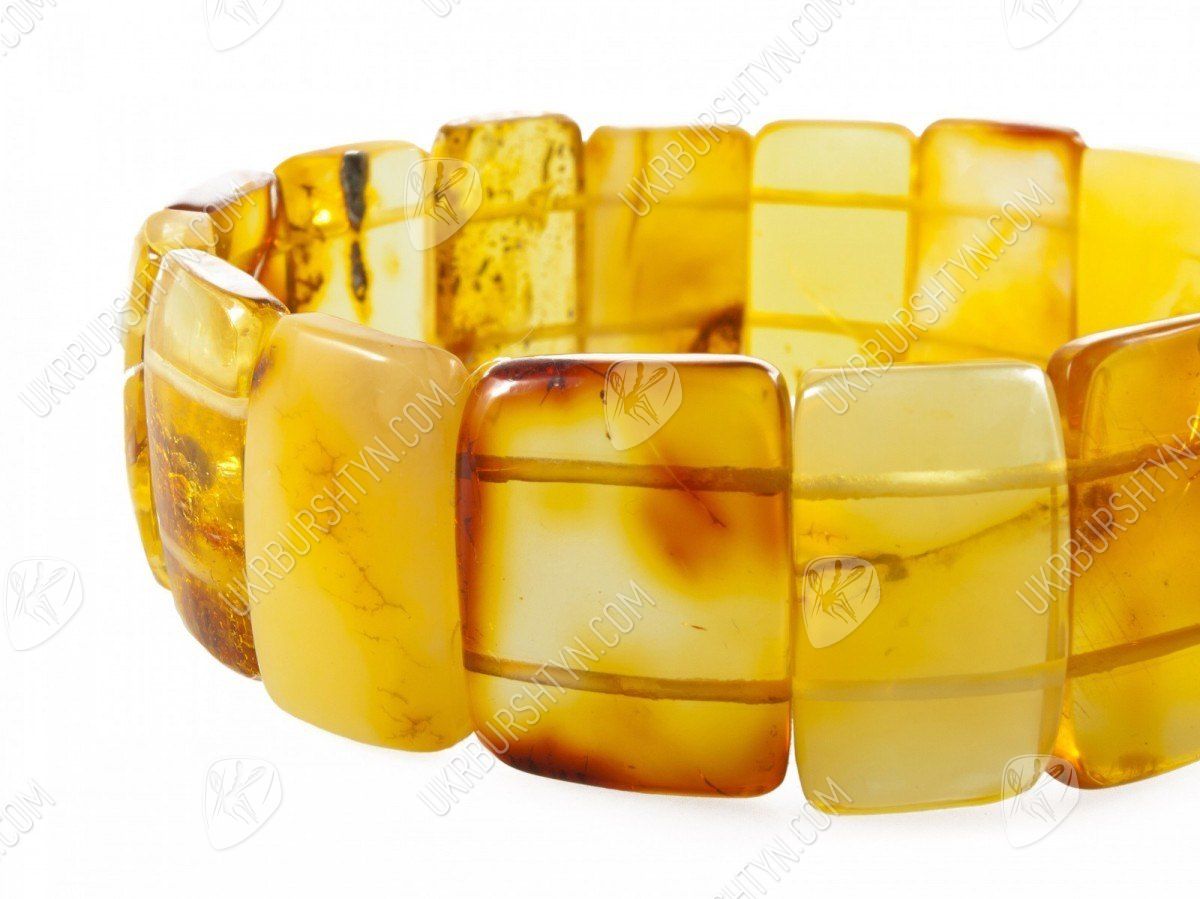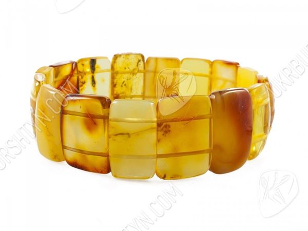 Широкие, заметные украшения на запястье – верный способ привлечь внимание к своим изящным рукам и грациозным жестам. Именно такой эффект окажет представленный на этой странице эксклюзивный аксессуар. Мастер вручную выточил пластинки из полесского янтаря, тщательно подобрав полупрозрачные золотистые, рыжеватые, шафрановые и оранжевые самоцветы с многочисленными контрастными включениями. Кажется, будто от ярких драгоценных камней исходит лучистый свет и приятное тепло – поэтому произведение окажется кстати как солнечным летним днём, так и в осенне-зимний сезон. Вы можете купить браслет, а также подобрать подходящие к нему серьги, кольцо либо кулон, связавшись с нашим консультантом.