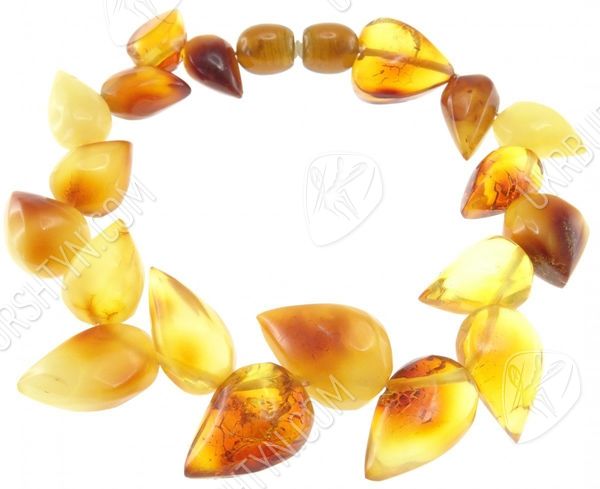 Наступает осень – самое время примерить украшения из натуральных камней, окрас которых повторяет те яркие, насыщенные цвета, которыми сияют кроны деревьев. И лучше всего для такой цели подходят изделия из полесского янтаря – например, этот авторский браслет. Мастер создал его, используя кусочки окаменевшей смолы самых разных тонов – нежно-золотистых, интенсивно оранжевых, матово-кремовых, бледно-лимонных и даже глубоких терракотовых. Сходство с опавшими листьями только усиливает каплевидная форма самоцветов. Благодаря столь креативному и оригинальному дизайну это произведение смотрится чрезвычайно эффектно, стильно и заметно, разнообразя пасмурные дни и долгие тёмные вечера.