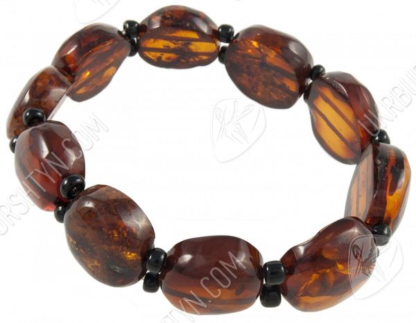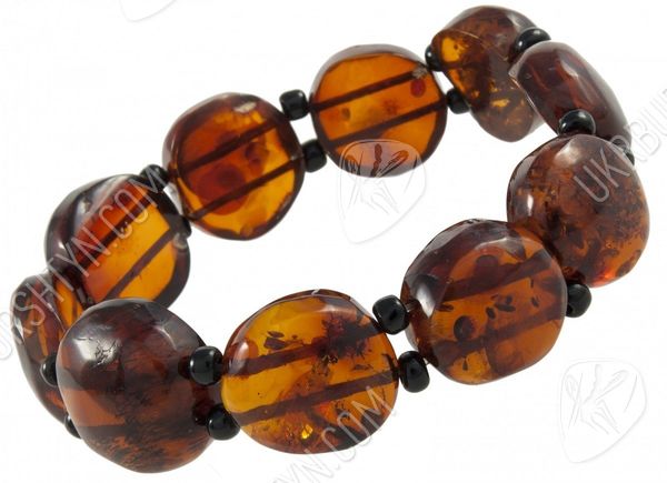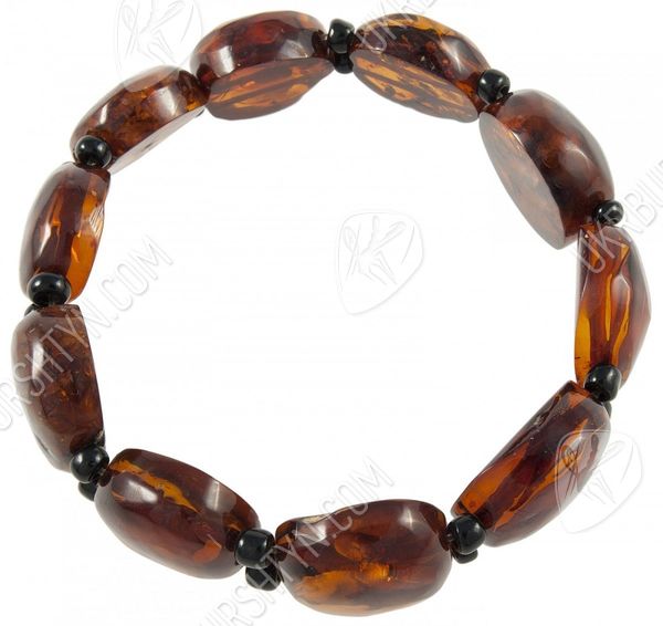 Тёмный янтарь – прекраснейший драгоценный камень. В его завораживающей, манящей глубине можно рассмотреть удивительные вкрапления и артефакты, попавшие туда миллионы лет назад, но вместе с этим он не выглядит мрачным из-за своего сияющего солнечного оттенка. Поэтому, собираясь купить браслет в Киеве или любом другом городе, обратите внимание на это украшение. Поверхность круглых пластин, из которых выполнено изделие, отполирована до блеска, а крошечные бусины между ними делают браслет интереснее и легче. Благодаря оригинальному дизайну этот аксессуар отлично впишется в наряд, выдержанный в стиле Street Casual, дополнит шёлковую блузку или вязаный кардиган.