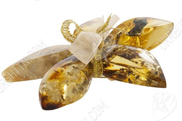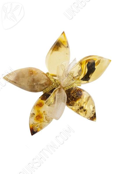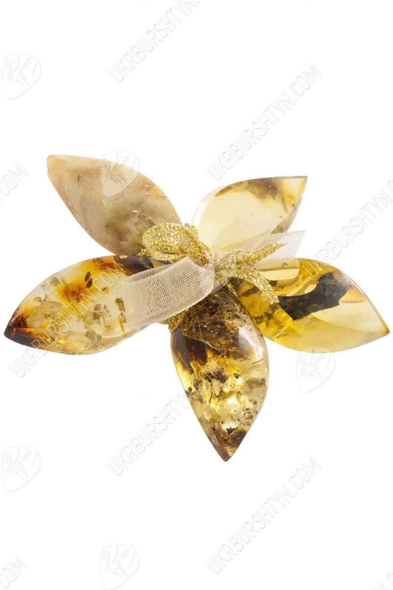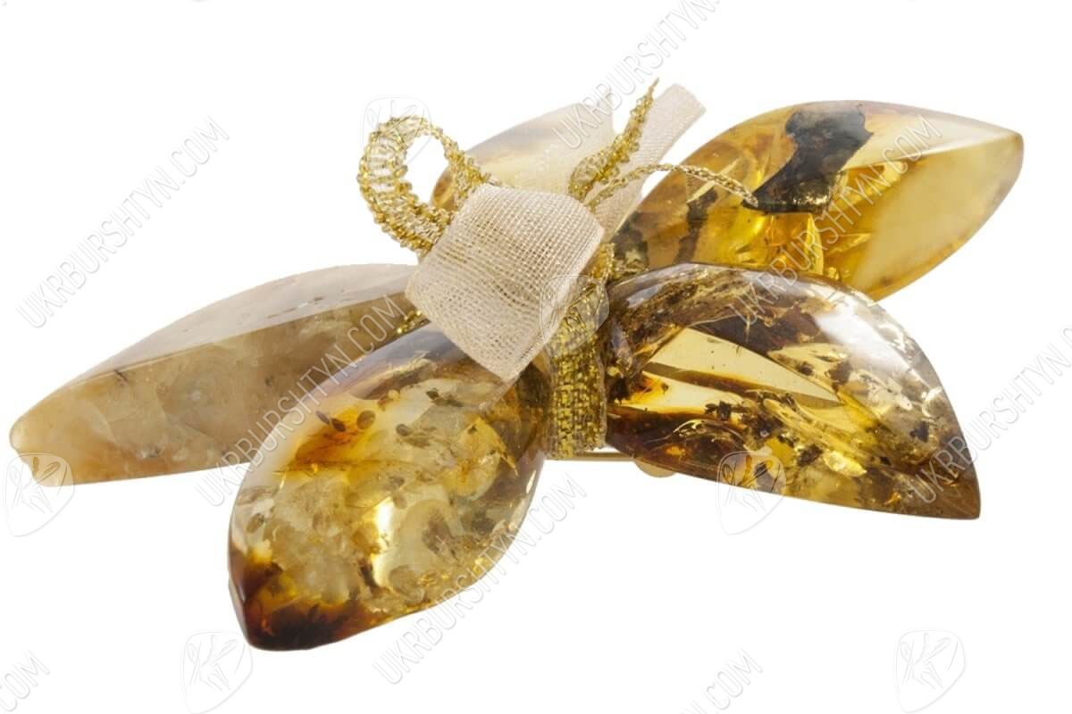 Брошь-цветок «Янтарь с включениями»