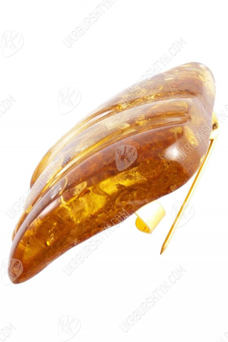 Янтарная брошь изготовлена из цельного натурального камня и застежки золотистого цвета. По форме и цвету камень напоминает кусочек застывшего мёда, поэтому при взгляде на него включаются не только зрительные, но и вкусовые рецепторы. Крупный размер, асимметрия, включения, коричневые прожилки и другие признаки натуральности – все эти составляющие сделали украшение супермодным. Можно купить брошь из янтаря, чтобы украсить деловой костюм, джемпер, пальто или даже головной убор – она везде будет уместна, привлечёт особое внимание и вызовет неподдельное восхищение.