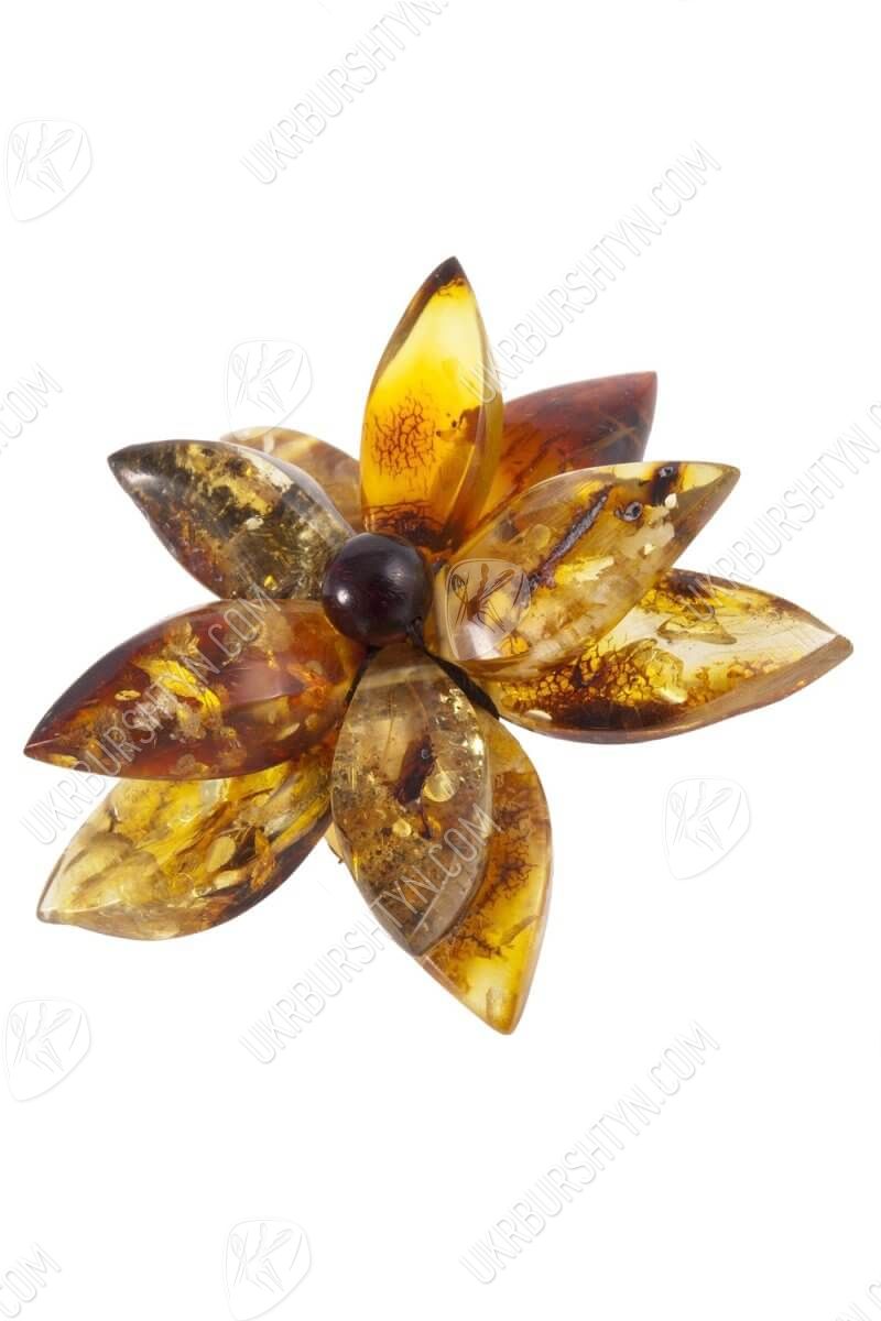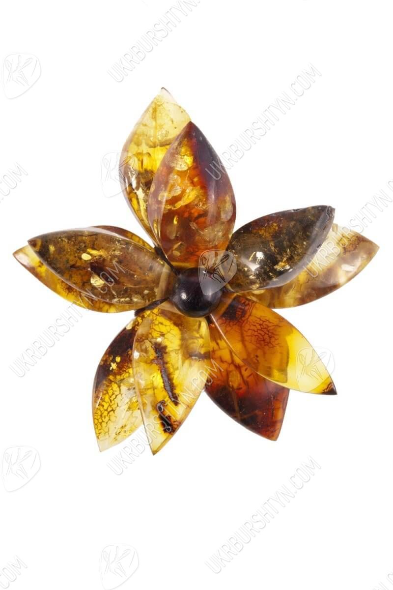 Мечтаете выглядеть роскошно и эффектно, привлекая восхищённые взгляды и наслаждаясь комплиментами окружающих? Достичь этого очень просто – нужно лишь примерить показанную здесь авторскую брошь «Цветок». Мастер вручную изготовил её из полесского янтаря. Естественные, приятные тона драгоценного камня, а также тщательная обработка каждого самоцвета делает это украшение и впрямь похожим на изысканное экзотическое растение. Золотистые, рыжеватые, оранжевые, коричневатые и шафрановые лепестки, собранные в изящную розетку, идеально дополнят вечернее или коктейльное платье. Купить брошь в интернет-магазине очень просто – нужно лишь связаться с менеджером, обсудив все нюансы доставки.