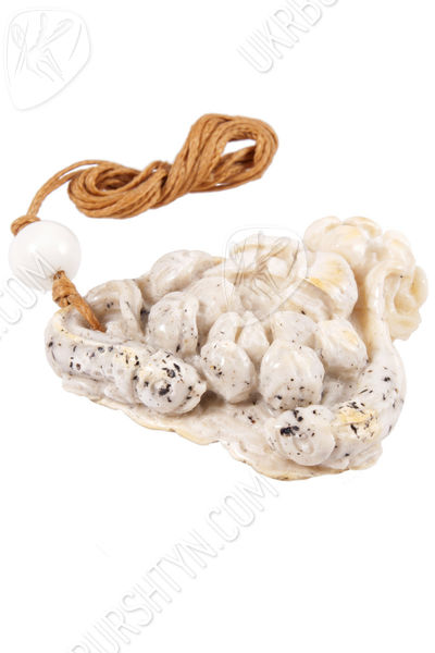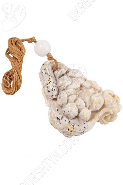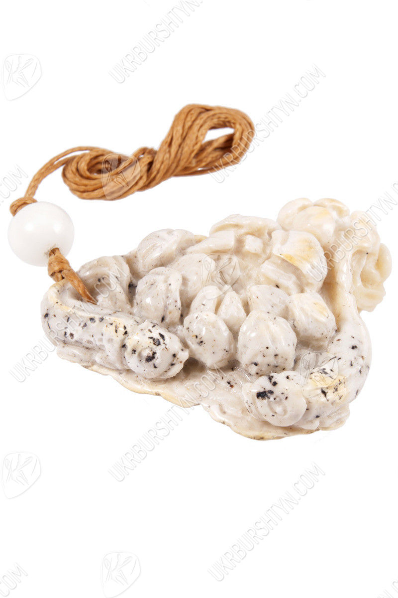 Если желаете купить подарок для мамы изысканный и бесценный, вы обратились по адресу. Украшение выполнено из натурального янтаря благородного жемчужного оттенка с интересной текстурой. Лотос и рыбки составляют единую композицию роскошного, эффектного изделия. Аксессуар дополнит легкий повседневный, утонченный вечерний образ. Деловому костюму придаст меньшей строгости и большего лоска. В каком обществе вы не оказались бы, с милой драгоценностью всегда будете чувствовать себя уверено и на высоте. Стильный и современный кулон станет настоящим оберегом, защищая от болезней, одаривая хорошим настроением.