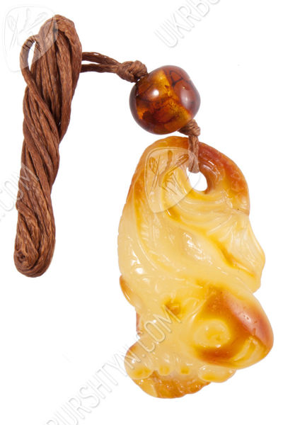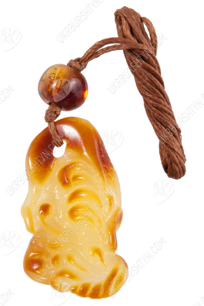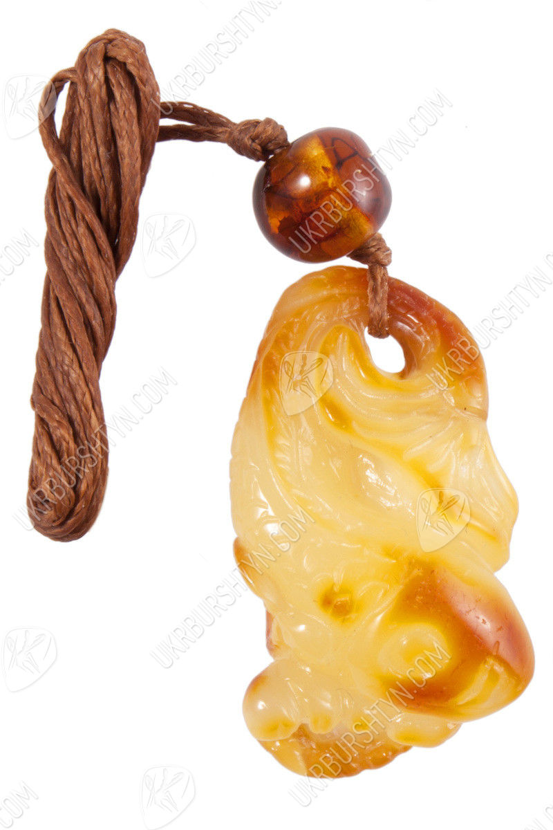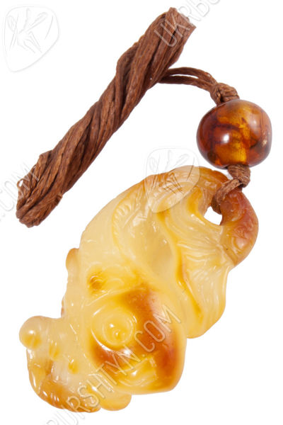 Например, эта модель подойдет любительницам экстравагантных аксессуаров с животными мотивами. Кулон на воскованном жгуте повторяет форму золотой рыбки. Можно не сомневаться, что с такой очаровательной вещицей на шее заветные желания начнут исполняться будто по мановению волшебной палочки. Приятный желто-карамельный цвет с медными отливами радует глаз, а при солнечном свете на изысканной драгоценности появляются чудесные карминные отблески.