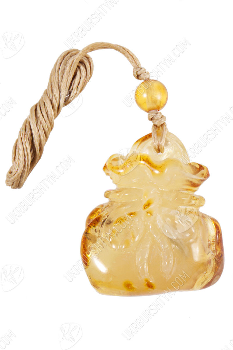 Янтарные украшения – стильные драгоценности, которые актуальны во все времена и при любых обстоятельствах. Представленный кулон в виде мешочка тому явное подтверждение. Необычный, эффектный аксессуар способен невероятным образом обыкновенный повседневный наряд превратить в облик с оригинальной изюминкой. Подвеска подчеркнет индивидуальность каждой женщины, природную привлекательность. Солнечный камень приятного молочного оттенка с яркими оранжевыми вкраплениями придаст уверенности в себе, наполнит положительной энергией, поможет избавиться от хронической усталости и неврозов.