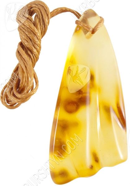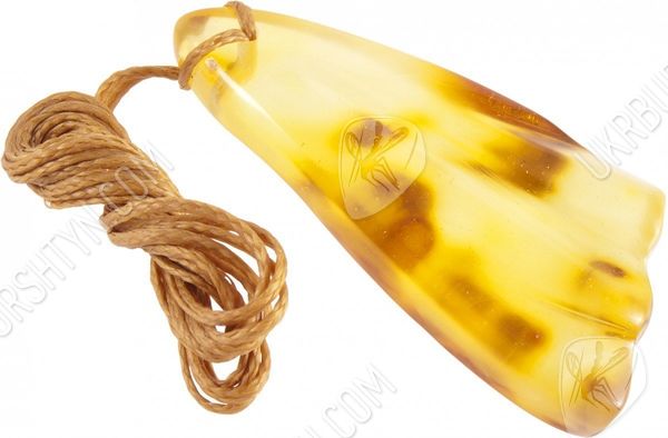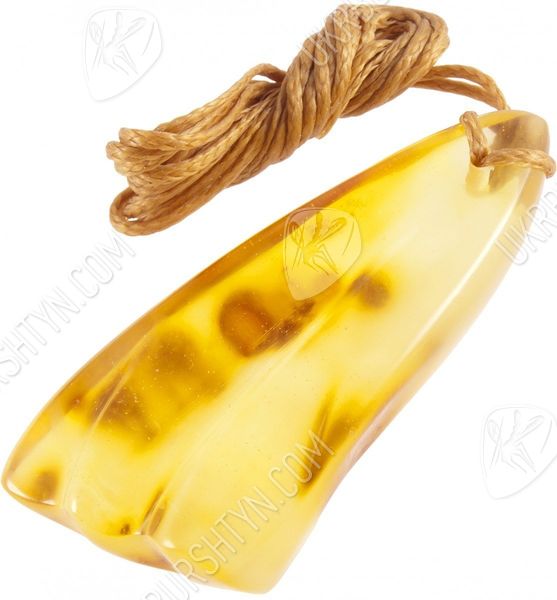 Нежный янтарный кулон напоминает лёгкое перышко. Он выполнен из камня светлого медового оттенка и крепится на прочном воскованном жгуте. Натуральные пятнышка на кусочке окаменевшей смолы делают его оригинальным и неповторимым. Необычная форма подчеркивает утончённость изделия. Кулоны из янтаря обладают лечебными свойствами, поэтому аксессуар - не только красивый, но и полезный для здоровья. Универсальный и практичный, он подойдёт к любому наряду. Тёплый цвет, лучше всего, будет смотреться на тёмном фоне, играя лучиками на контрасте. Ручная работа и добрые мысли наших мастеров наполнили это изделие позитивом и светлой энергией для Вас.