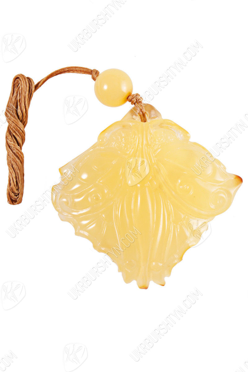Подвеска драгоценности выдержана в нежном лимонно-сливочном тоне. Купол повторяет форму бабочки: узорчатые крылышки и вытянутое брюшко. Матовая декоративная бусина и карамельный жгут прекрасно вписываются в композицию. Глубокие линии и заметные изгибы сообщают аксессуару выразительности и эстетичности.