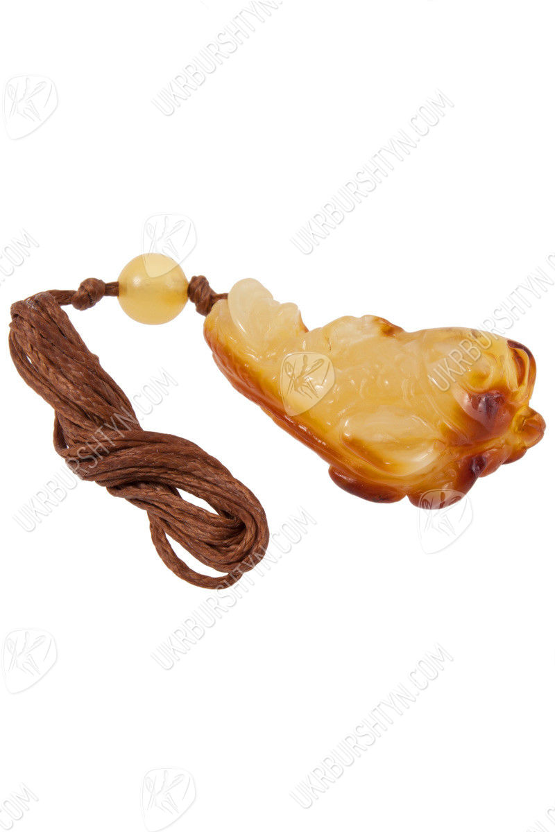 Авторские украшения из натуральных камней всегда отличались от дизайнерских ювелирных коллекций оригинальностью, самобытностью, особым шармом, «изюминкой». Эксклюзивный кулон – эффектная ручная работа из янтаря медового оттенка. Изготовленное в виде рыбки, изделие символизирует плодородие, гармонию, богатство. Подарить аксессуар можно личностям, являющимися лидерами по жизни, мечтающим добиться поставленных целей, оставить свой яркий след в истории. Подвеска поспособствует исполнению желаний, принесет благополучие, любовь, счастье. Нежная вещица гармонично впишется в креативный образ, придаст уверенности, утонченности, лоска.