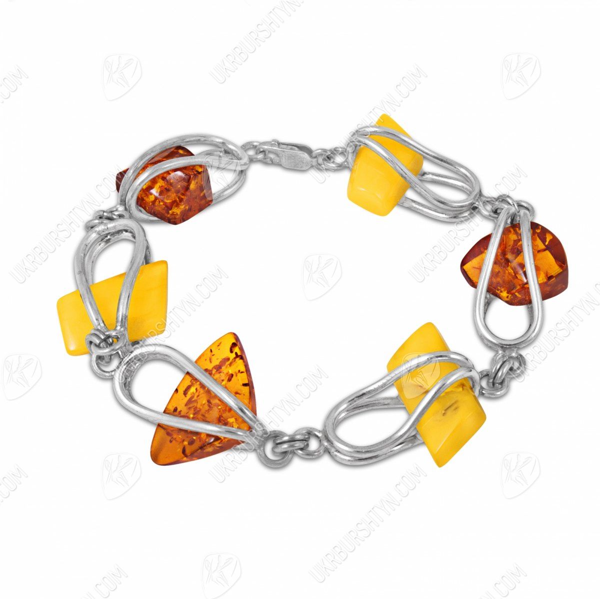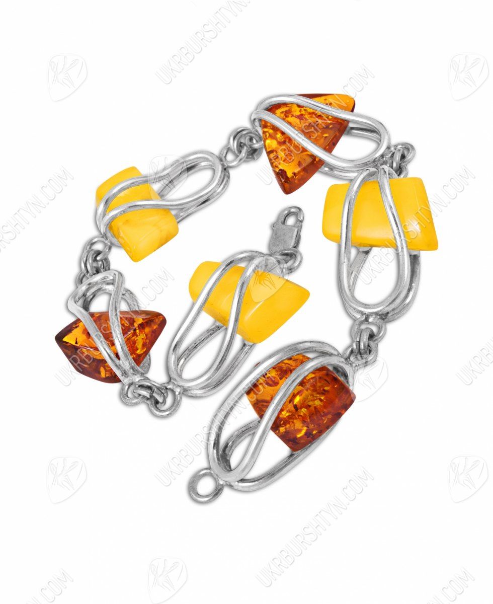 Серебряный браслет с камнями янтаря