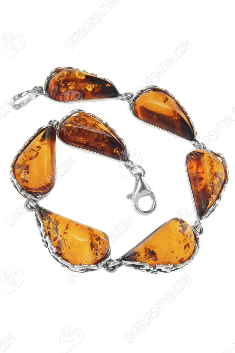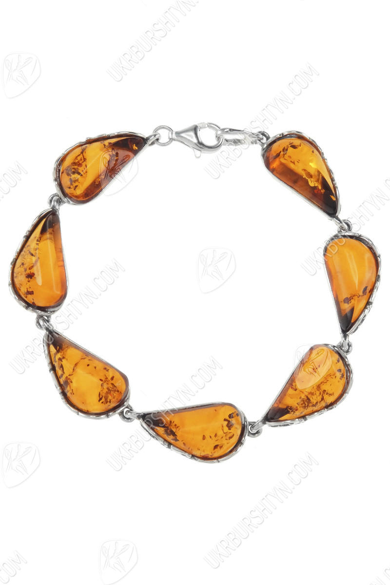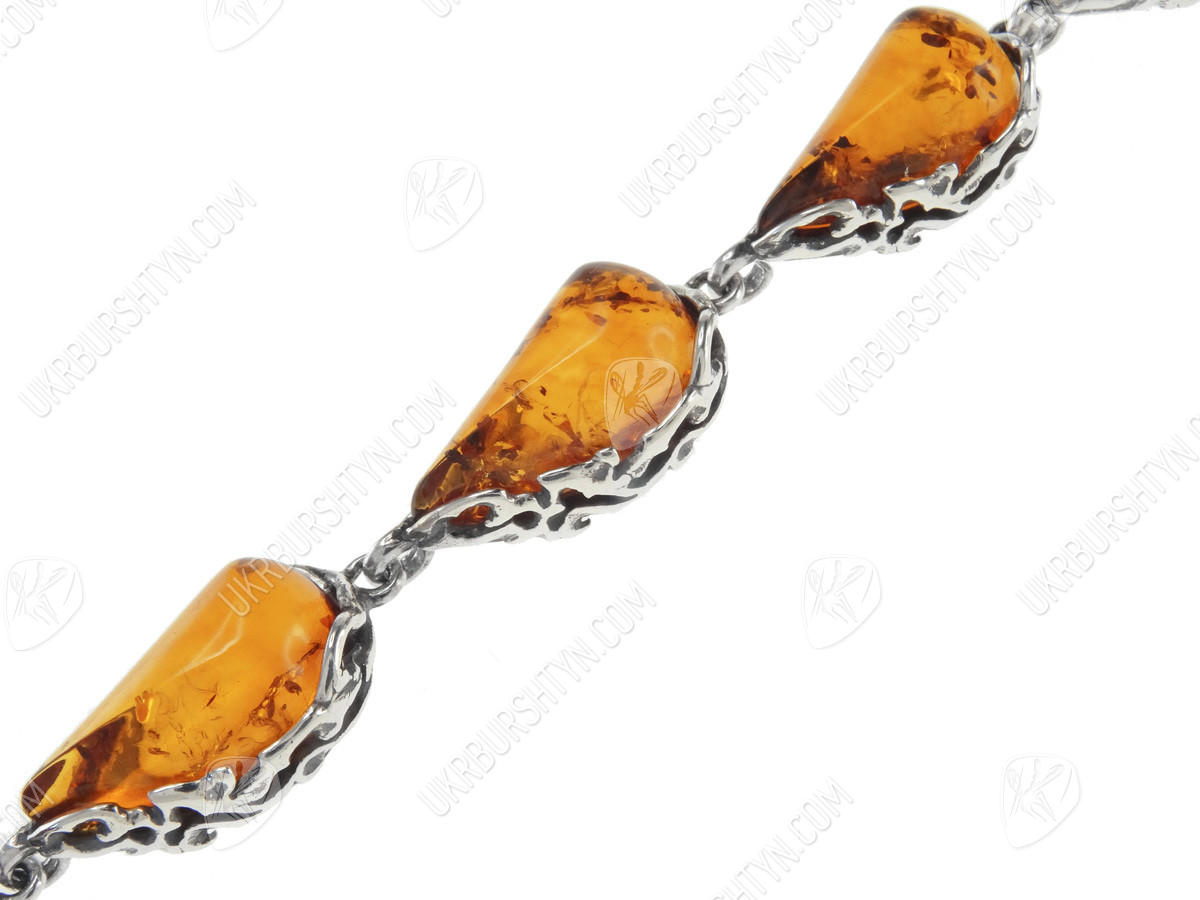 Серебряный браслет с камнями янтаря «Амелия»