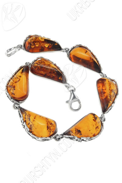 Только представьте, как заиграют роскошные камни на солнечном свете, насколько красиво будет смотреться изделия на утонченном запястье. Вы до сих пор размышляете браслет из янтаря купить или нет? Присмотритесь к изысканной авторской работе: аксессуар так и норовит обнять ручку и захватить вас в плен. Игривые янтарные бусины коньячного цвета имеют каплевидную форму. Серебряные звенья придают драгоценности еще большего благородства, богатства. Выполнена она в классическом стиле. Яркие детали, перегружающие общую композицию и отвлекающие внимание, отсутствуют благодаря чему браслетик сочетается с любыми нарядами.