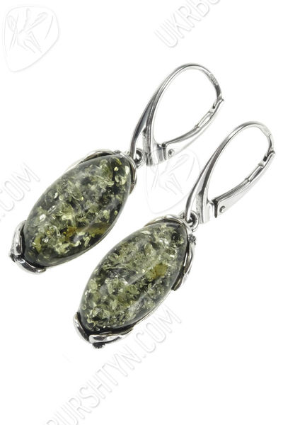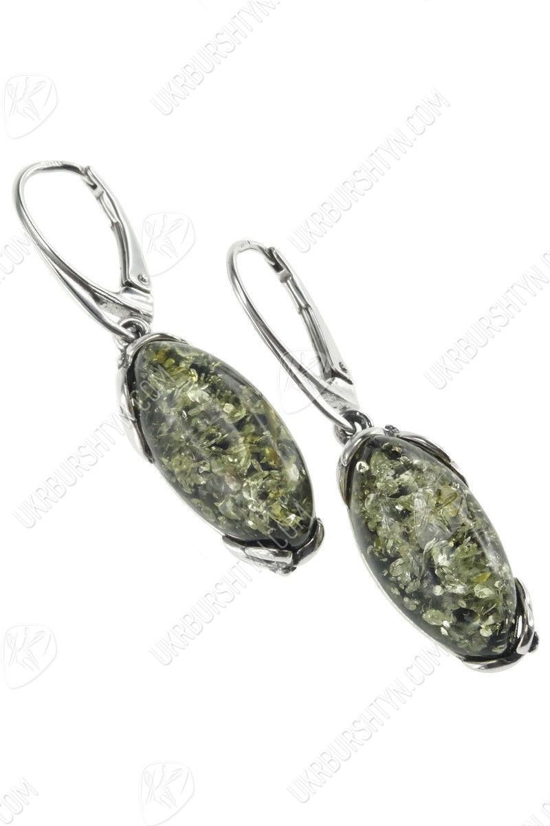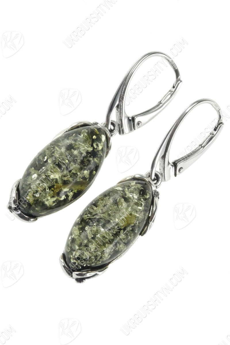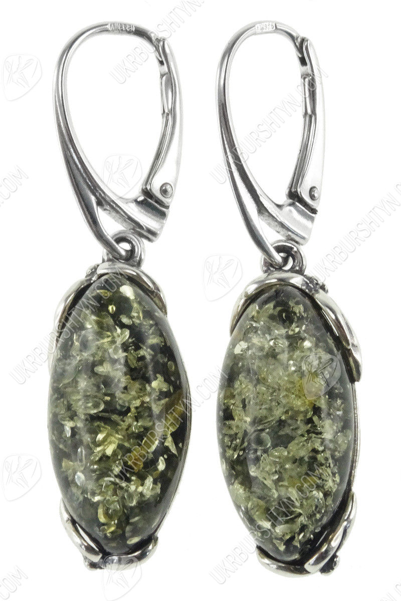 Серебряные серьги с янтарными кабошонами «Матиола»
