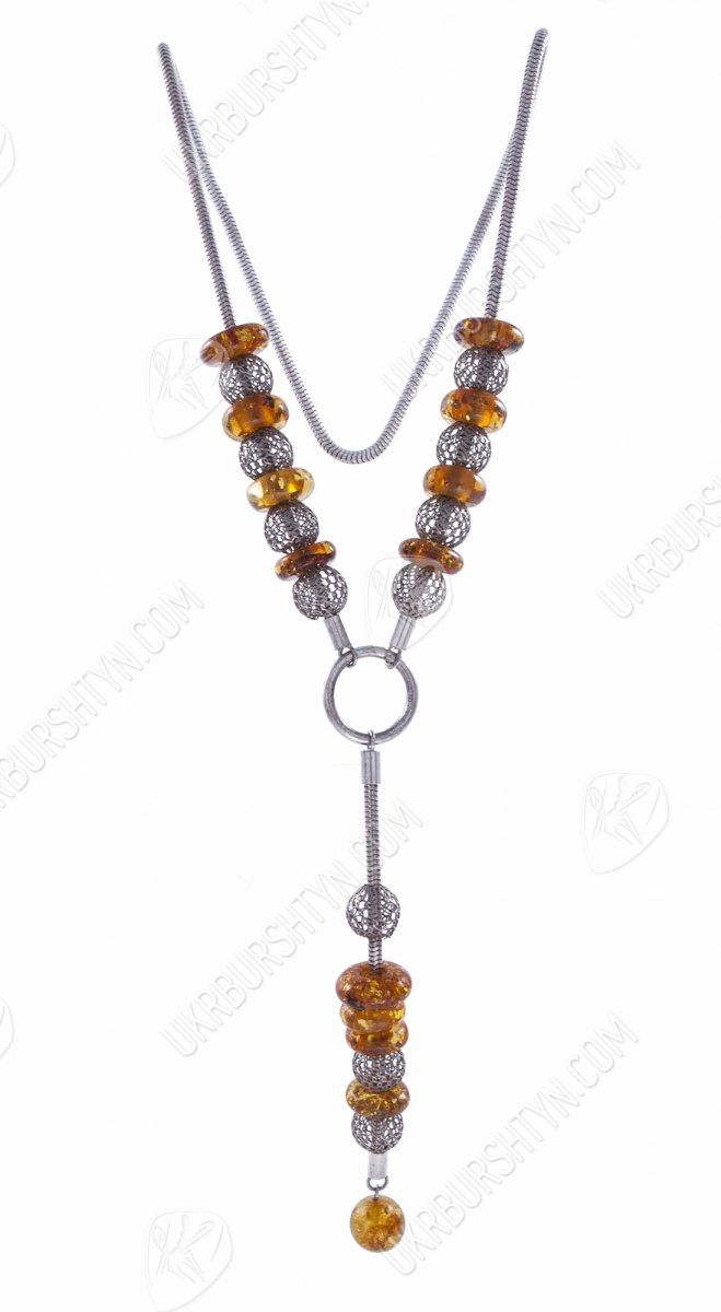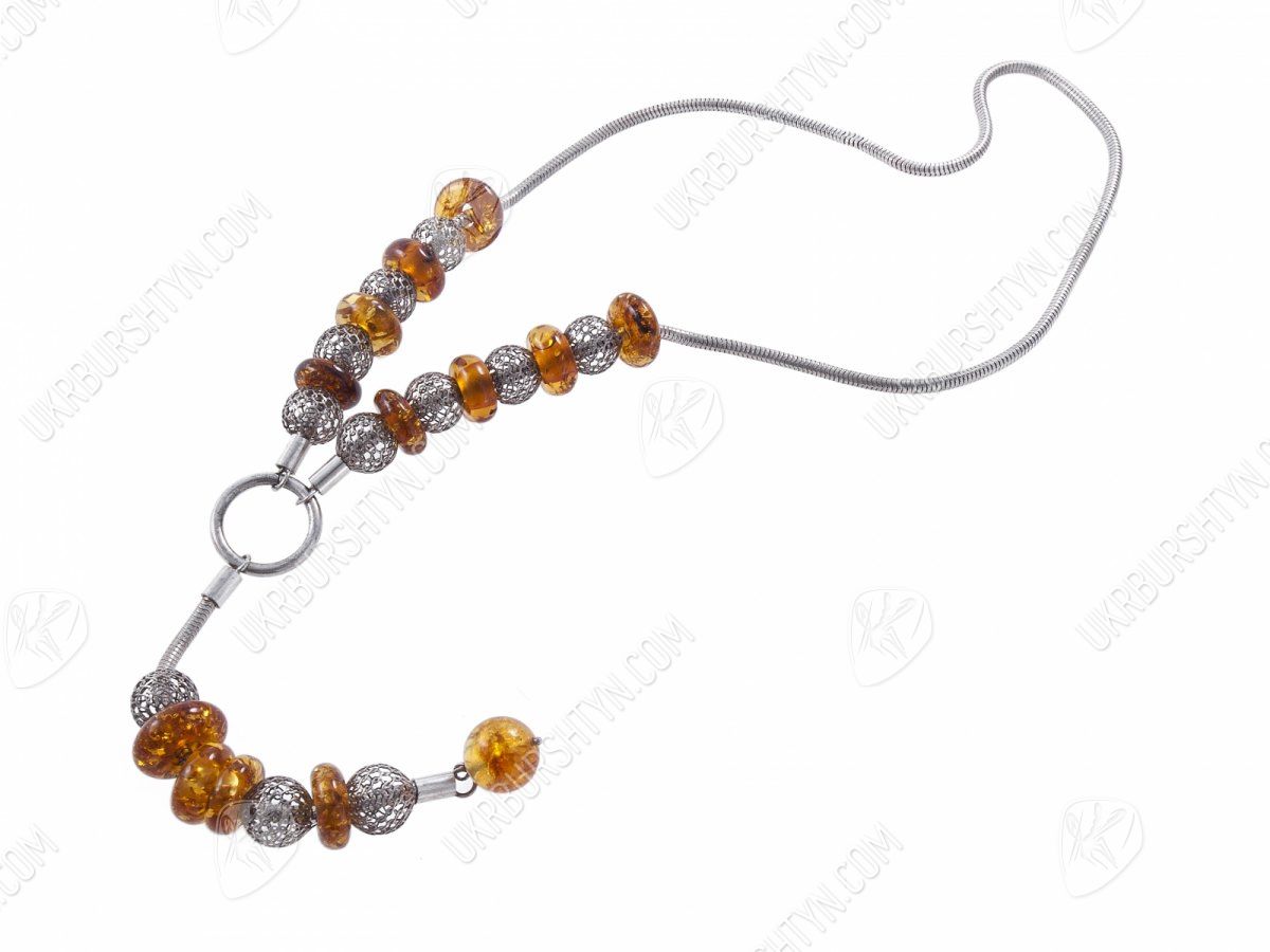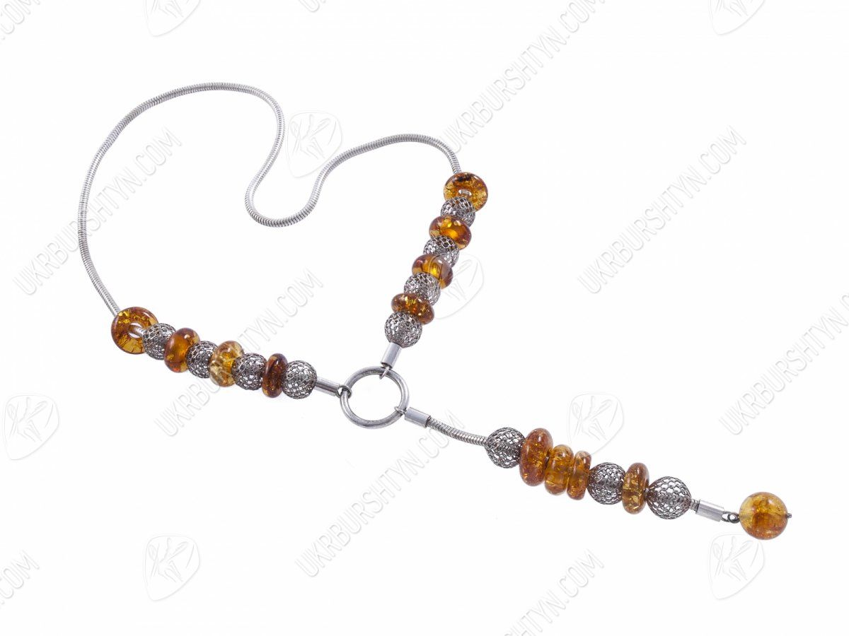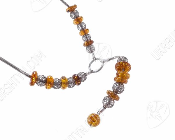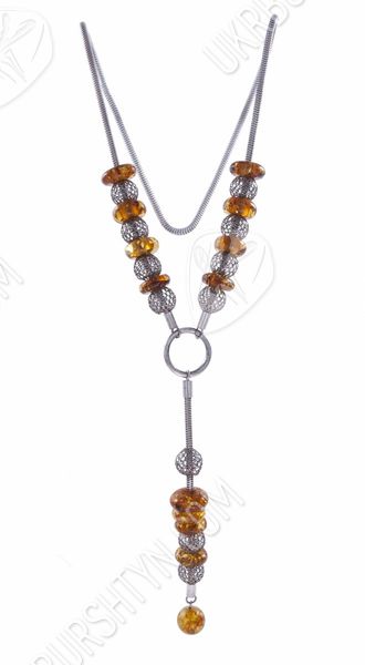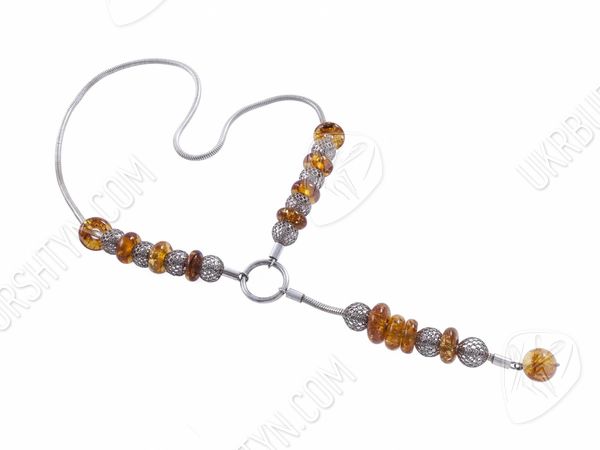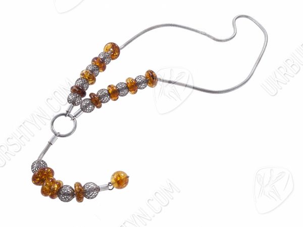 Колье из серебра с янтарными вставками