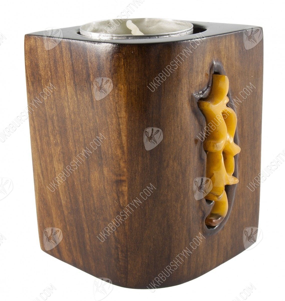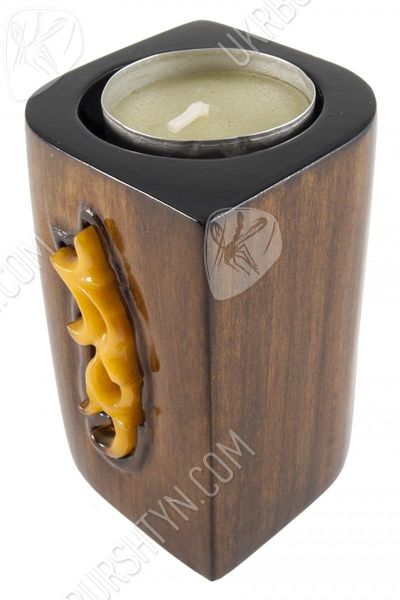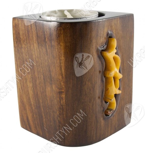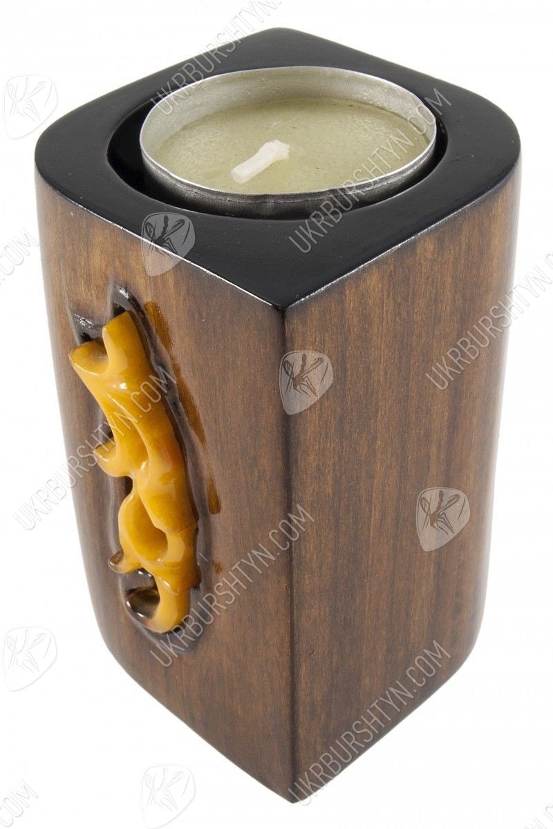 Скоро Новый год, а значит, в домах начнут зажигаться свечи, принося в жилище уют и праздничное настроение. И если вы ещё не обзавелись оригинальным и привлекательным подсвечником – самое время это сделать. А поможет вам в этом наш магазин сувениров, ведь только здесь вы найдёте такие нестандартные предметы для декора! Например, это изделие, где сочетаются янтарь, дерево и ткань, прекрасно впишется в любой интерьер – от «кантри» или «прованса» до строгой классики. Мастер умело подобрал небольшие камешки, украсив ими основу произведения, и оттенил разноцветье кристаллов тканой лентой. А гнездо для свечи отделано металлом, чей тёплый оттенок дополняет гамму всей работы.