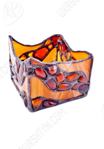 Ищете симпатичное и оригинальное украшение для дома? А возможно, у ваших близких скоро праздник, и вам понадобятся интересные подарки? В любом случае, этот подсвечник из янтаря – то, что вам нужно. Его волнистые линии напоминают о пляске огненных языков, и драгоценный камень, из которого он изготовлен – золотистый и багряный – только усиливает это впечатление. Гладко отполированные пластины и кабошоны поблёскивают, отражая каждый лучик света. Кажется, он согревает одним своим присутствием, а представьте, насколько усилится этот эффект, если в нём зажечь свечу. Впрочем, зачем представлять – вы можете приобрести это восхитительное изделие и полюбоваться ним в реальности!