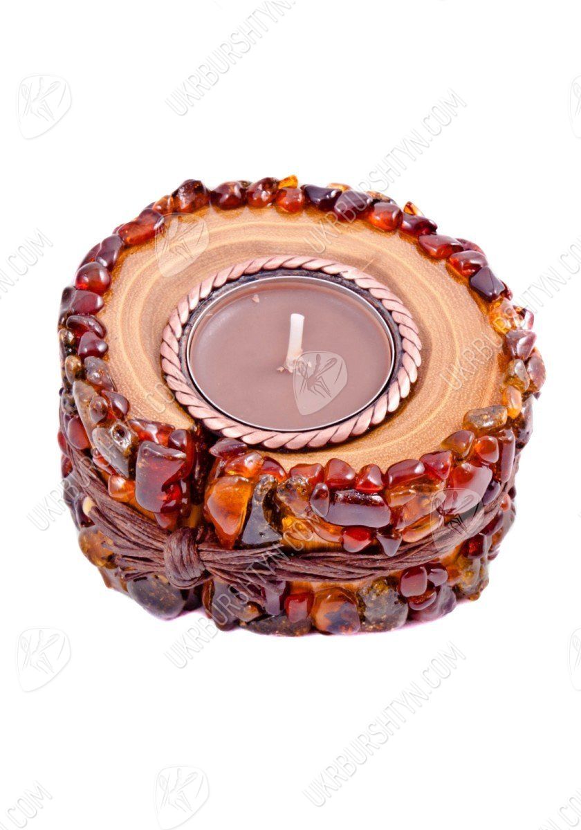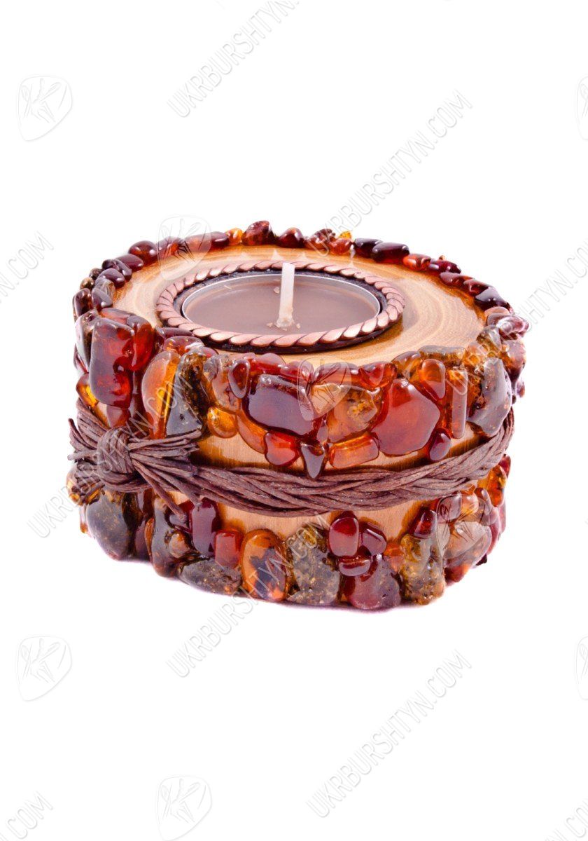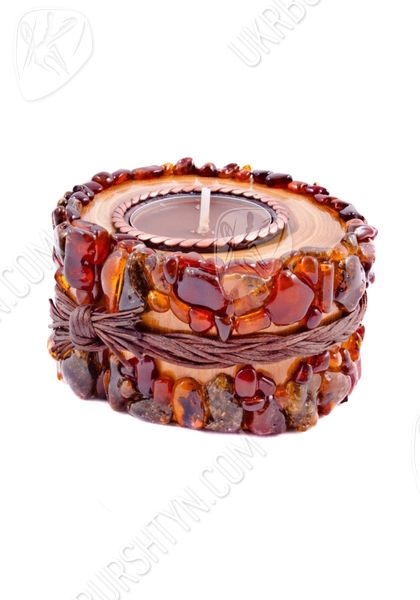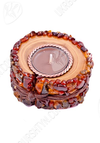 Если ваш дом или квартира оформлены в классическом, этническом либо стиле кантри – тогда этот подсвечник станет отличным акцентом в интерьере. Он полностью изготовлен из натуральных, природных материалов, а значит, когда вы зажжёте в нём свечу, то сможете почувствовать приятный аромат, выделяемый янтарём. Небольшие кусочки этого самоцвета украшают поверхность произведения, а перевязывающий его грубый жгут напоминает не то о новогодних подарках, не то о «ленточках желаний», которые завязывают на счастье. Вы можете дополнить его другим изделием в похожем стиле, создав настоящий ансамбль – наш магазин сувениров всегда рад вам в этом помочь!