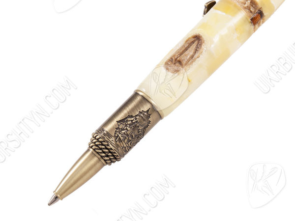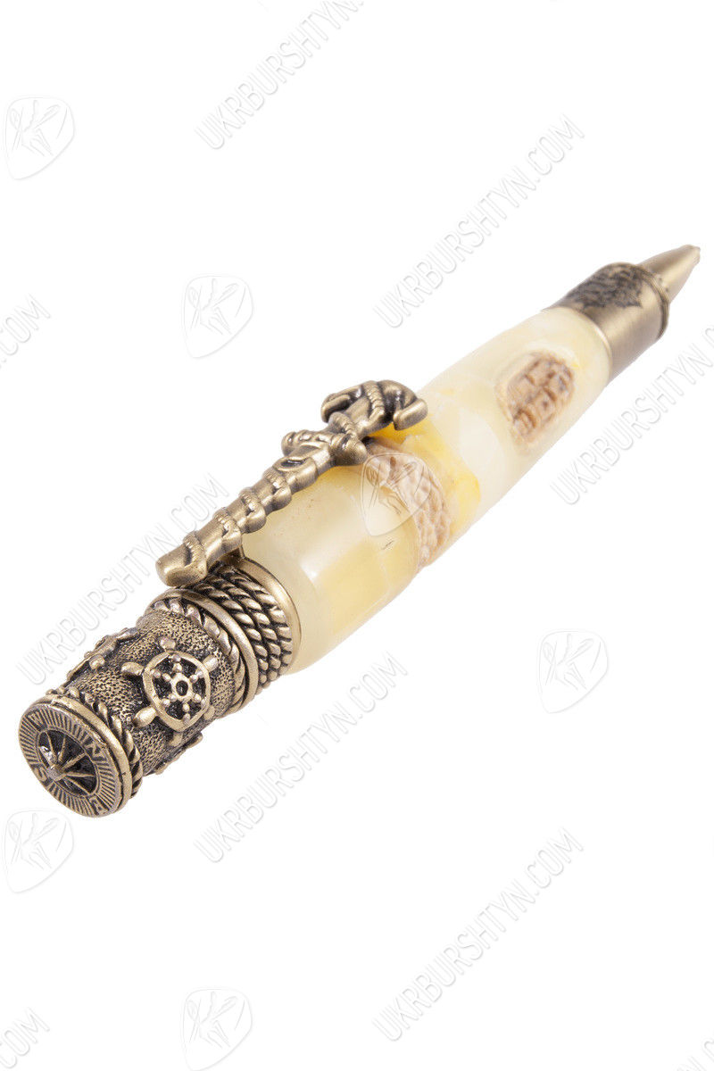 Ручка из натурального янтаря «Гавань» - роскошный подарок начальнику, который навсегда оставит в сердце тепло, а в памяти – хорошие воспоминания. Корпус отполированный до глянцевого блеска. Выполнен из лечебного природного минерала жемчужного оттенка. Эффектная декоративная деталь – вставка из рога косули цвета слоновой кости. Позолоченная фурнитура стильная и лаконичная. Прекрасно сочетается с общей структурой изделия, не нарушая целостную композицию. Элегантная авторская работа принесет не только практическую пользу, но и эстетическое удовольствие: подчеркнет имидж и высокое положение в обществе.