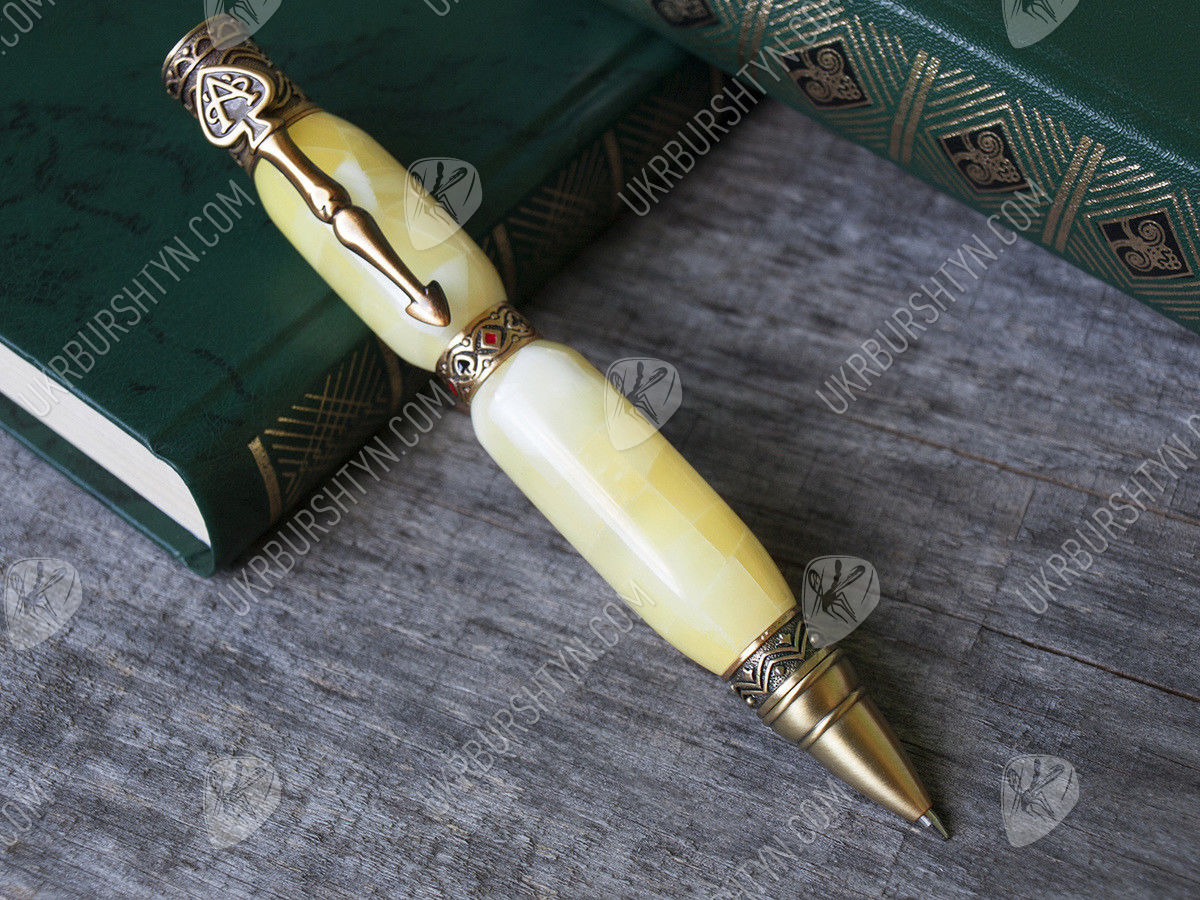 Ручка с резбленным янтарем «Азарт»