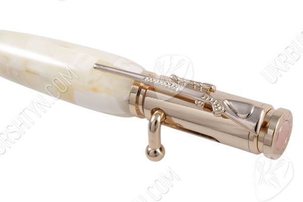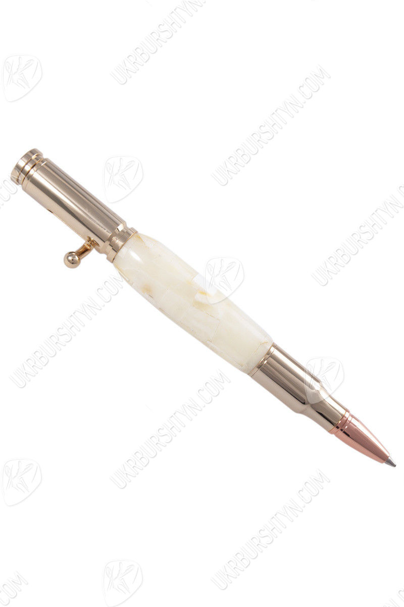 Размышляете, что подарить руководителю или коллеге? Уникальным подарком станут изделия из янтаря ручной работы. Роскошная шариковая ручка — символ успешного человека, статусный аксессуар во время важных переговоров, грандиозной сделки. Материал корпуса — полупрозрачный, натуральный камень цвета слоновой кости. Золотистая металлическая фурнитура гармонично сочетается с оттенком самоцветов и подчеркивает изысканность творения. Каждая частица имеет оригинальный вид благодаря кропотливым стараниям мастеров-ювелиров. Элегантный дизайн понравится мужчинам и женщинам, которые привыкли двигаться вперед и достигать цели.