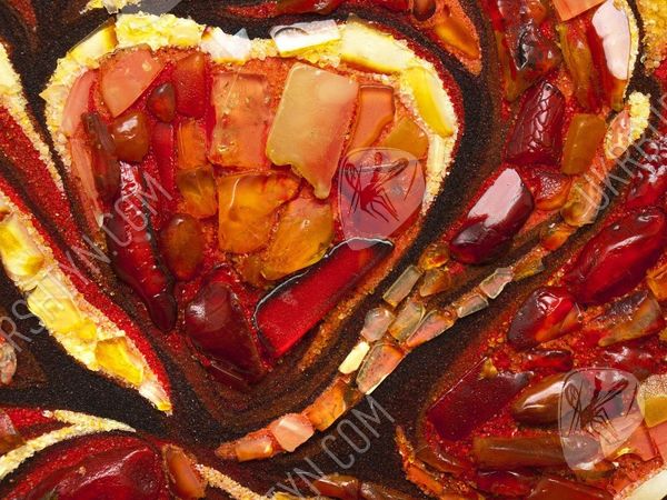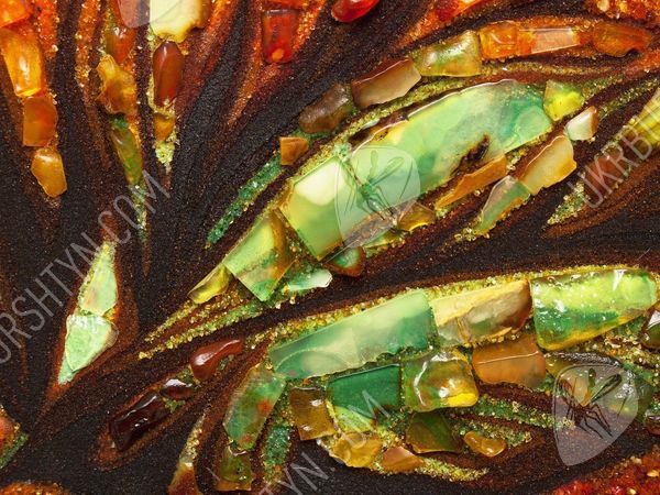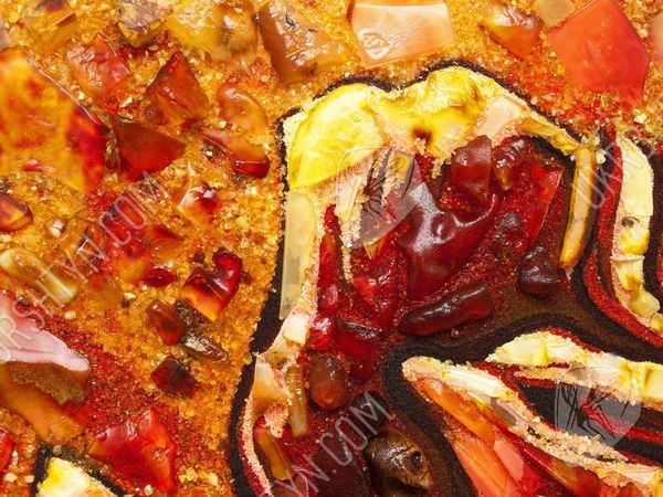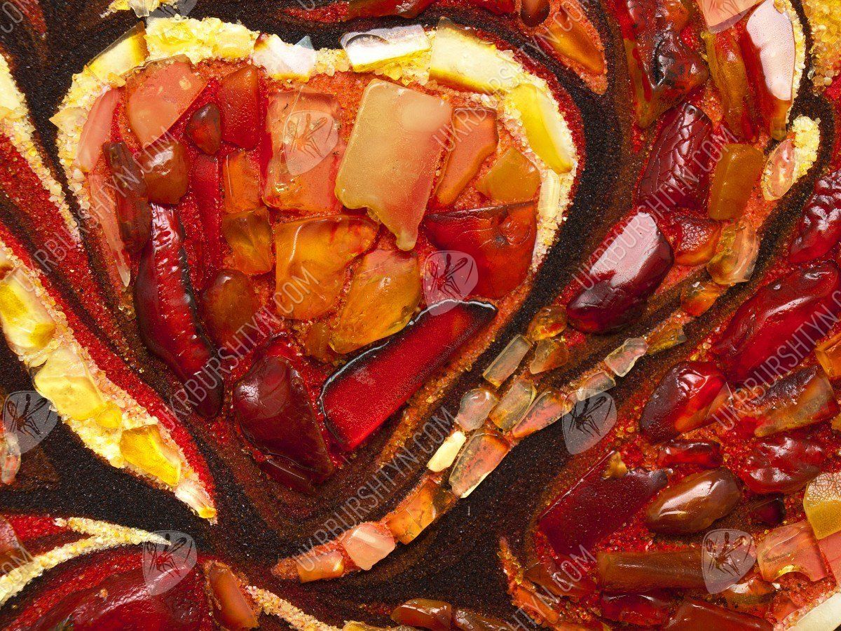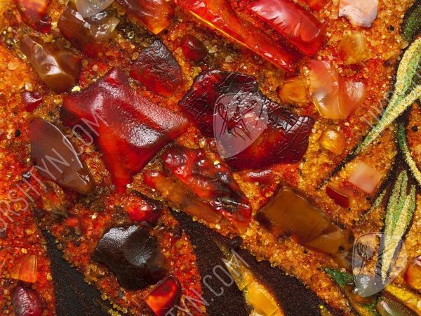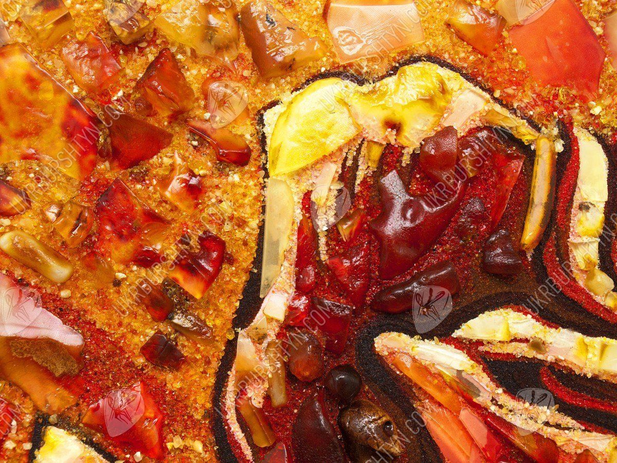 У кожному приміщенні повинен бути центральний акцент - аксесуар, який привертає увагу та об'єднує весь дизайн. В якості такого оригінального і ефектного штриха до інтер'єру Ви можете купити декоративне панно, представлене на цій сторінці. Майстер зобразив розпускаючу троянду, використовуючи червоний, багряний, теракотовий та помаранчевий поліський бурштин. Листя царственої квітки, зроблені з оливково-зелених, смарагдових і коричневих шматочків скам'янілої смоли, вносять в загальну палітру нотку прохолоди та свіжості. Цілісні самоцвіти, якими усипана картина, надають їй об’єм і рельєфність. А кам'яна крихта дозволила передати найтонші нюанси тонів, відтінків та форм.