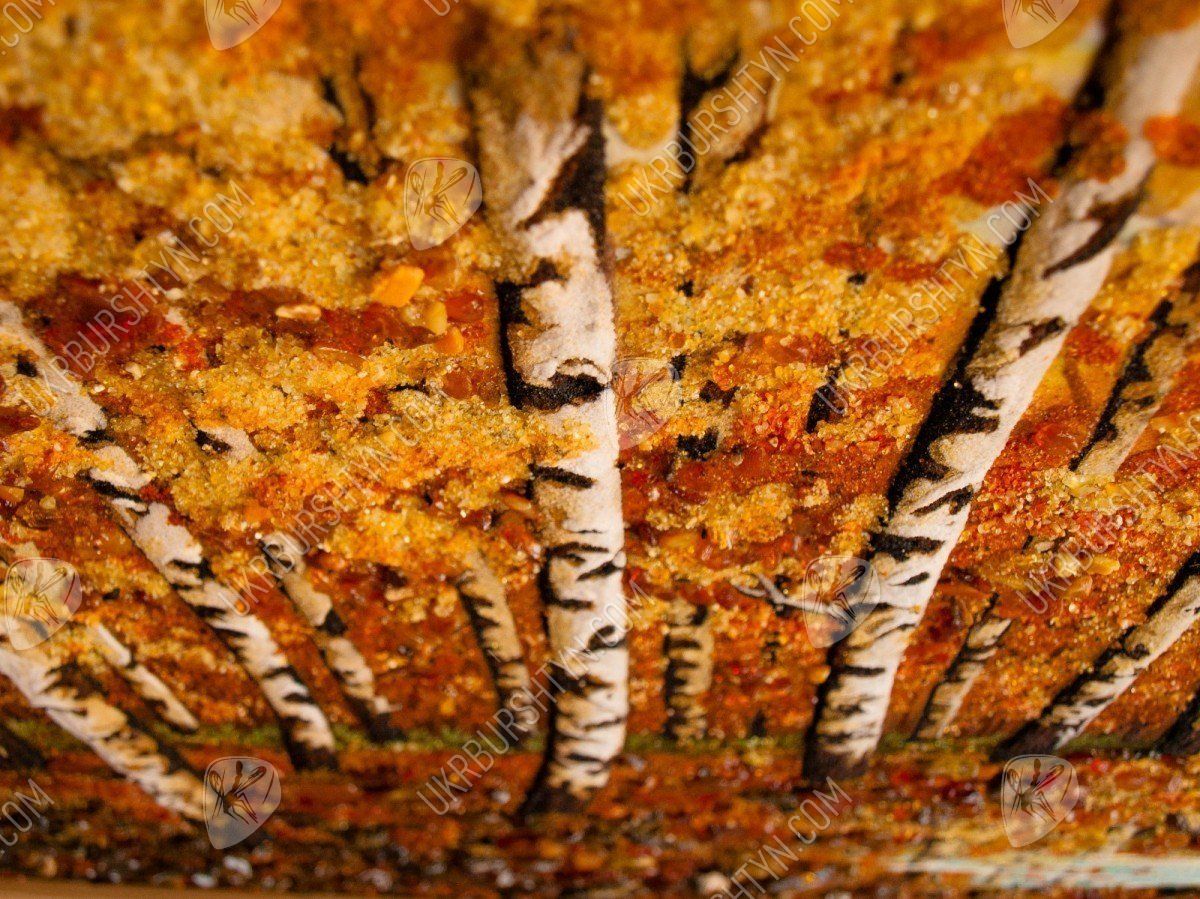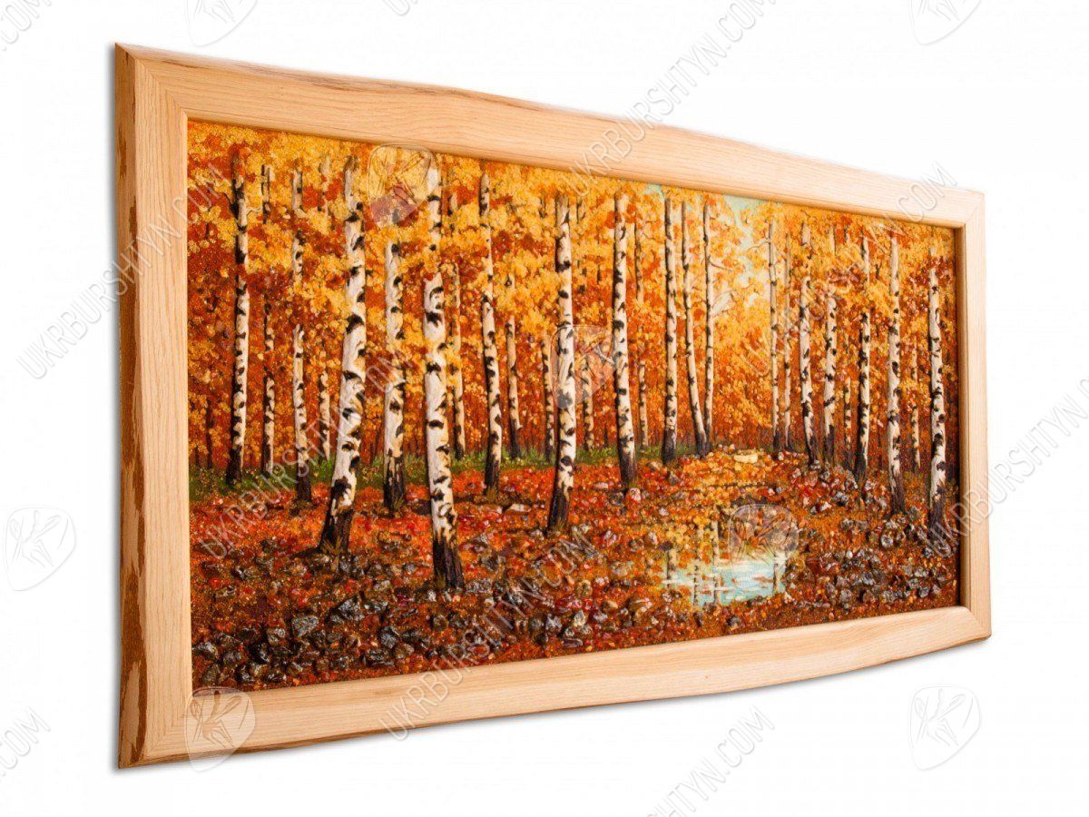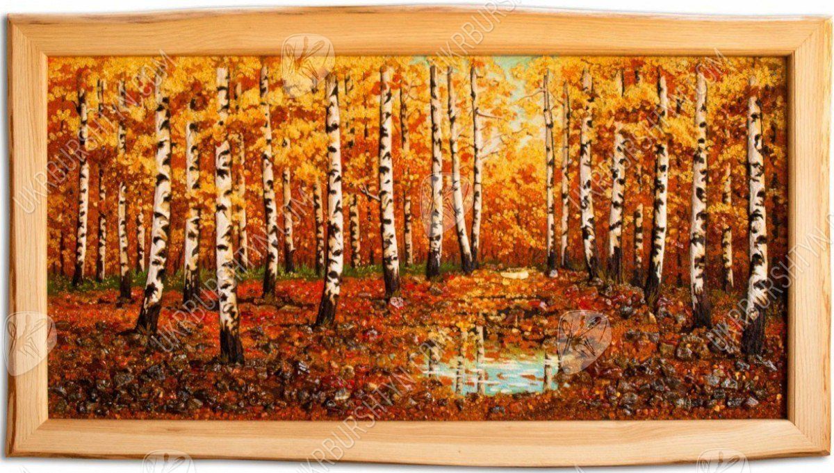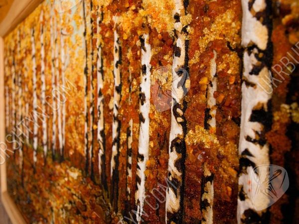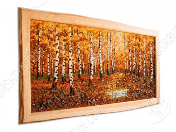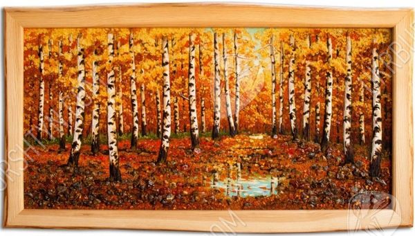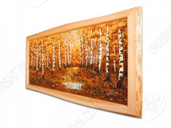 Вибираючи аксесуари для інтер'єру, Ви віддаєте перевагу тільки самим добротним, якісним та довговічним витворам? Представлені в нашому інтернет-магазині красиві картини володіють всіма цими властивостями - а ще вони надзвичайно ефектні, стильні та виглядають неординарно. Взяти хоча б це панно з натурального бурштину - майстер зумів не тільки відтворити пейзаж, але й зробити його виразним, яскравим та чарівним. Висипані з золотистої, оранжевої, шафранової і коньячної кам'яної крихти дерева злегка виступають над поверхнею зображення - завдяки цьому воно здається живим та повітряним. А цільні самоцвіти, якими прикрашена земля, надають роботі завершеність і об’єм.