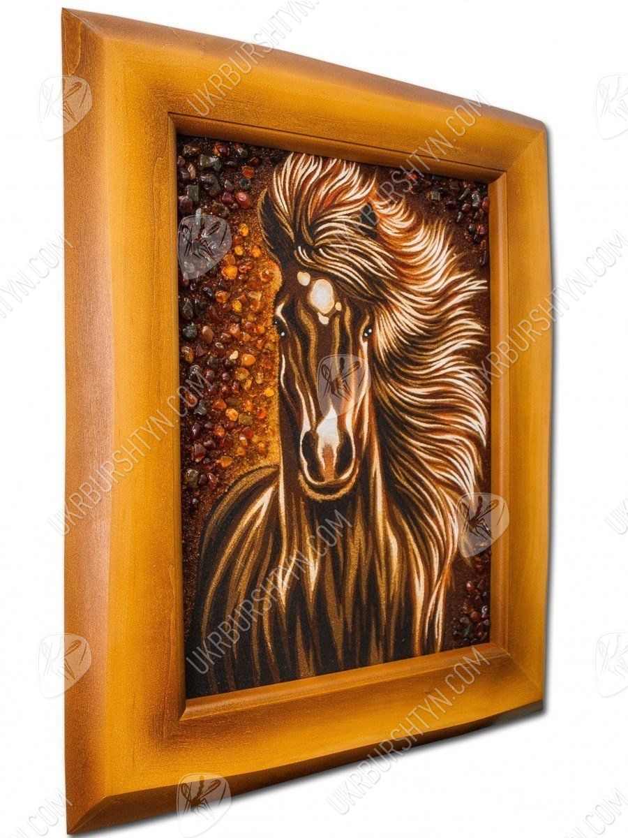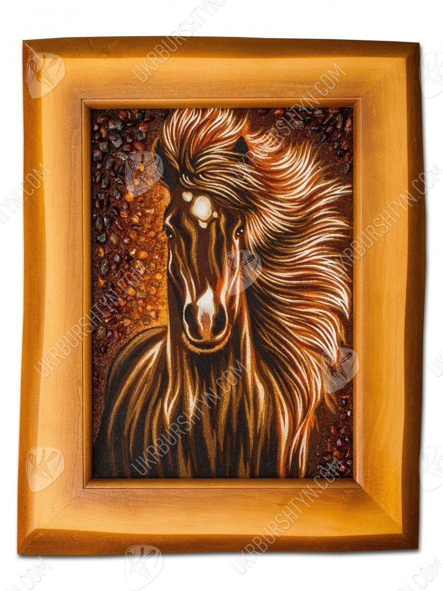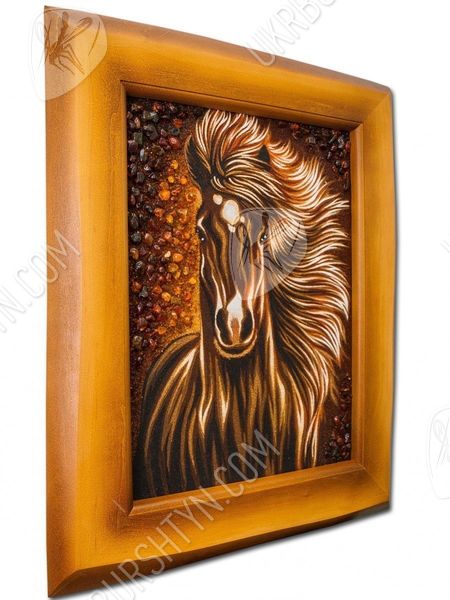 Згідно з ученням фен-шуй, коні символізують сміливість, хорошу репутацію, витривалість та завзятість. Щоб привернути ці позитивні якості, необхідно розмістити зображення сильної і красивої тварини у південно-східній зоні квартири. А вибрати його Ви зможете, переглядаючи наш каталог картин. Взяти хоча б це декоративне бурштинове панно - майстер висипав з коричневої і золотистої самоцвітної крихти коня, вміло передав його уважний погляд, напруження м'язів, розвіваючу гриву. Фон, виготовлений з цілісних дорогоцінних каменів, тому чудово відтіняє центральну фігуру. Ви можете замовити картину будь-якого розміру - так вписати її в інтер'єр стане набагато простіше.